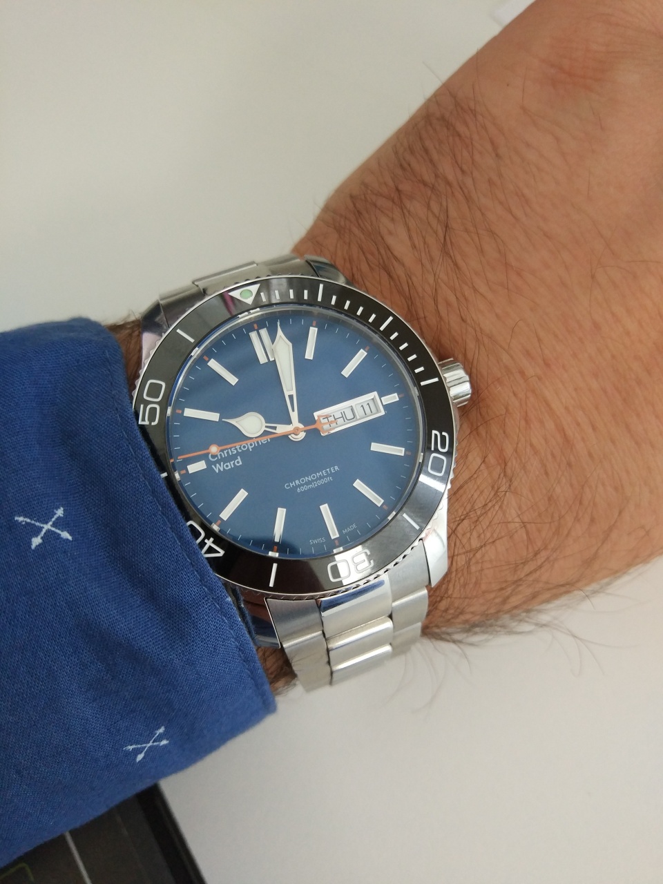 Теперь циферблат . Качество нанесения надписей на уровне часов с алика. Нет ну реально? Вам что нравятся эти поплывшие надписи? Мне эти поплывшие надписи бросаются в глаза даже при просмотре ролика на телефоне. Зачем там на циферблате написано Christopher Ward? Есть сомнения в своем логотипе? Почему логотип одного цвета с цифиром? Они что стесняются?