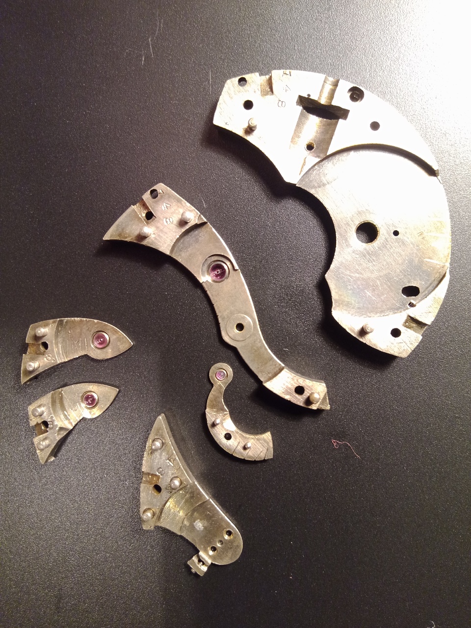 Заводные колеса, у коронного не хватает одного зуба. Комментарий про это есть выше. С донора взять не получится - там не хватает двух