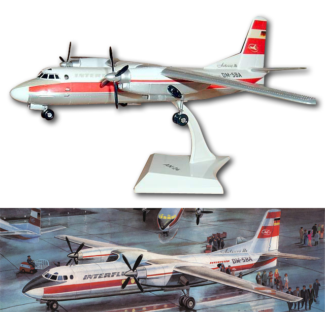 Всё гораздо проще -это наклейки от модели Ан-24 пр-ва Пластикарт(ГДР) в масштабе 1:100 в окраске авиакомпании Interflug(ГДР).