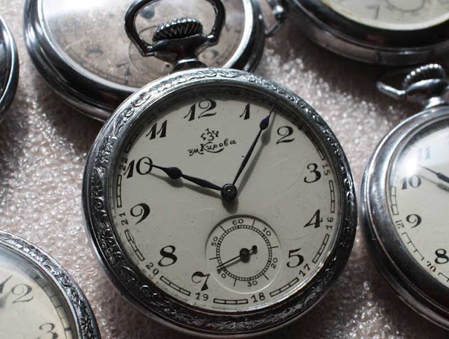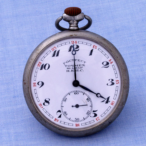 Образец карманных часов с полу-охотничьей крышкой. Можно определить время не открывая часов