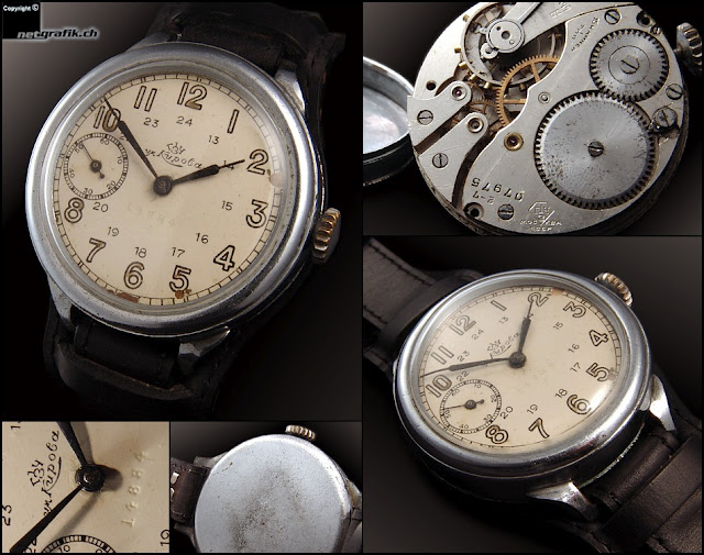 Многие наручные часы того времени не имели обозначения производителя, и их не так просто было идентифицировать. На фотографии часы, на циферблате которых упоминается «Полевая служба» и то, что они продавались компанией «High Class Watch». Данная модель была изготовлена для Британских ВМС, так как на циферблате мы видим эмблему Королевских ВМС.