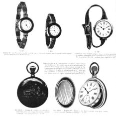 Было три основных способа крепления часов на запястье. Как видно в каталоге Гамильтона, это мог быть тонкий браслет-цепочка. Или же кожаный ремешок со специальной вставкой «лодочкой» для ношения на руке карманных часов, как показано в каталоге немецкого магазина от 1913 года. И наконец, третий способ, который не требовал специальных проушин для ремешка или браслета, а довольствовался маленькими петельками у карманных часов, сделанными из тонкой проволоки, на манер тех, что в каталоге Гамильтона.
