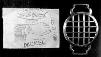 Поначалу многие наручные часы снабжались защитными крышками для стекла. Часто это были металлические решетки, иногда как дополнительный аксессуар, вроде защитной сетки на фотографии.