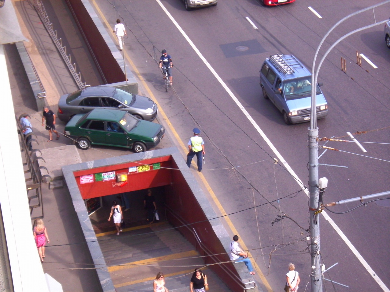 Вот пряма сейчас снял "продавца полосатых палочек" у себя под окном -- парковка на тратуаре ему отчего то не интересна .