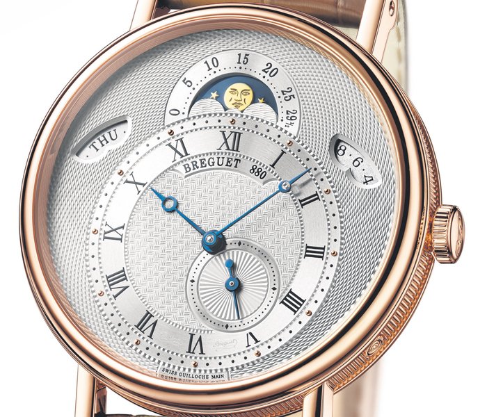 Сверхплоский Калибр 591.А, оснащенный дополнительным барабаном - сердце модели Classique (Ref. 5197). Здесь использование кремния при изготовлении анкера и спускового колеса позволило уменьшить силу инерции и обеспечить им функционирование без применения смазки Эти запатентованные открытия являются еще одним энергичным шагом, направленным на достижение точности механических часов; следует заметить также, что устойчивость кремния к магнитным полям снижает риск нарушения точности хода. В традиционно элегантный корпус из белого или желтого золота вставлен необычный циферблат: полоса часовых меток делится на две смещенные друг относительно друга половины, которые образуют спиральный рисунок вокруг центральной части диферблата, отделанной в стиле «плетенка». Фирменный логотип Breguet помимо циферблата нанесен на кремниевое колесо, видимое со стороны прозрачной задней крышки.