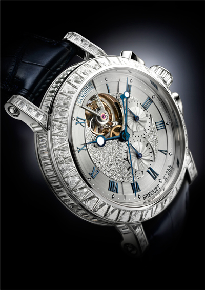 2001 году появляется модель Tourbillon с крышкой на циферблате, на ранте которой отмечена дата выдачи патента на турбийон: «Патент от 7 мессидора 9 года», то есть 26 июня 1801 года. 2002 - в каталог возвращается модель хронографа с двумя счетчиками. Среди женских часов выделяется модель Reine de Naples, навеянная первыми часами, созданными Бреге для неаполитанской королевы Каролины Мюрат. 2003 - «Подросший» до 40 мм корпус с прозрачной задней крышкой становится доминирующей темой новых моделей из коллекции Qassique. Почетное место принадлежит модели Reveil du Tsar, будильнику GMT с автоматическим механизмом, усовершенствованным в сотрудничестве с фирмой Blancpain и защищенным двумя патентами. Сплит-стрелка - главный элемент сплит-хронографа с ручным заводом Chronograph Rattrapante на двух цевочных колесах; автоматическая модель Power Reserve создана по подобию карманных часов из Музея Бреге, со смещенными от центра часовой и минутной стрелками, указателем запаса хода и ретроградной секундной стрелкой. Среди моделей класса Grand Complication выделяется исторический турбийон ручного завода, предлагаемый в женской версии: корпус выполнен из белого золота, рант украшен драгоценными камнями, циферблат перламутровый. На коллекционеров рассчитана модель с ручным заводом Minute Repeater Perpetual Calendar, выпущенная ограниченной 7 экземплярами серией в корпусе из платины. Бочкообразные модели Heritage снабжаются новым автоматическим механизмом с большим указателем даты.
