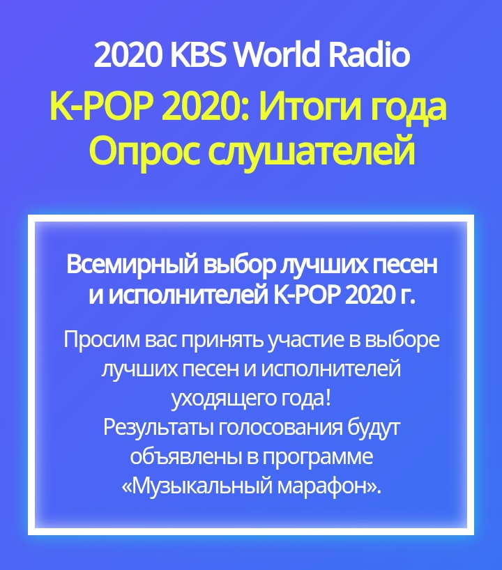 Вы можете также принимать наши передачи с домашней страницы Всемирного радио KBS в интернете на канале Win.K11:с 18:00 до 19:00 и с 9:00 до 10:00 по Гринвичу.Приём часовой передачи соответствующего дня доступен с нашего сайта в интернете в круглосуточном режиме на канале Win.K24. Обновление передачи ежедневно в 11 часов по Гринвичу.