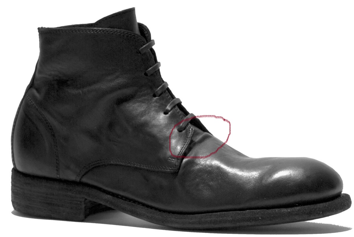 2. Чтобы это не резало глаза покупателю на витрине, вместо кожи стали использовать отходы в виде скорректированного дерьма (cavalry calf и всё остальное в виде различных пупырей). Ни один уважающий себя и своего покупателя производитель из этих отходов не шьет