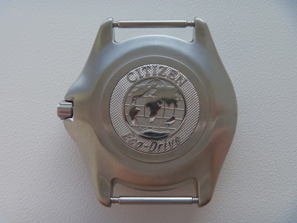 Изогнутые линии, полированной задней стороны часов восхищают. Немного не нравится надпись japan movt. Лучше бы её вообще не было. Citizen есть citizen, и в страну сборки я не верю. Но! Во первых в моих более дешёвых orient, есть надпись made in japan, а во-вторых есть брачек. Впресованный кружок с глобусом и надписями citizen и eco-drive, впресован с одной стороны сильно, а с другой недопресован, и при этом слега провернут по часовой стрелке.