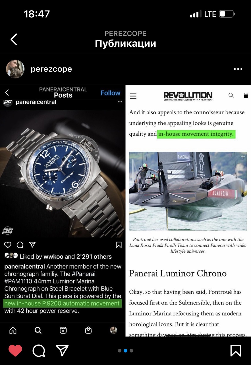 Началось с того, что в IG аккаунте Panerai написали, что in-house movement