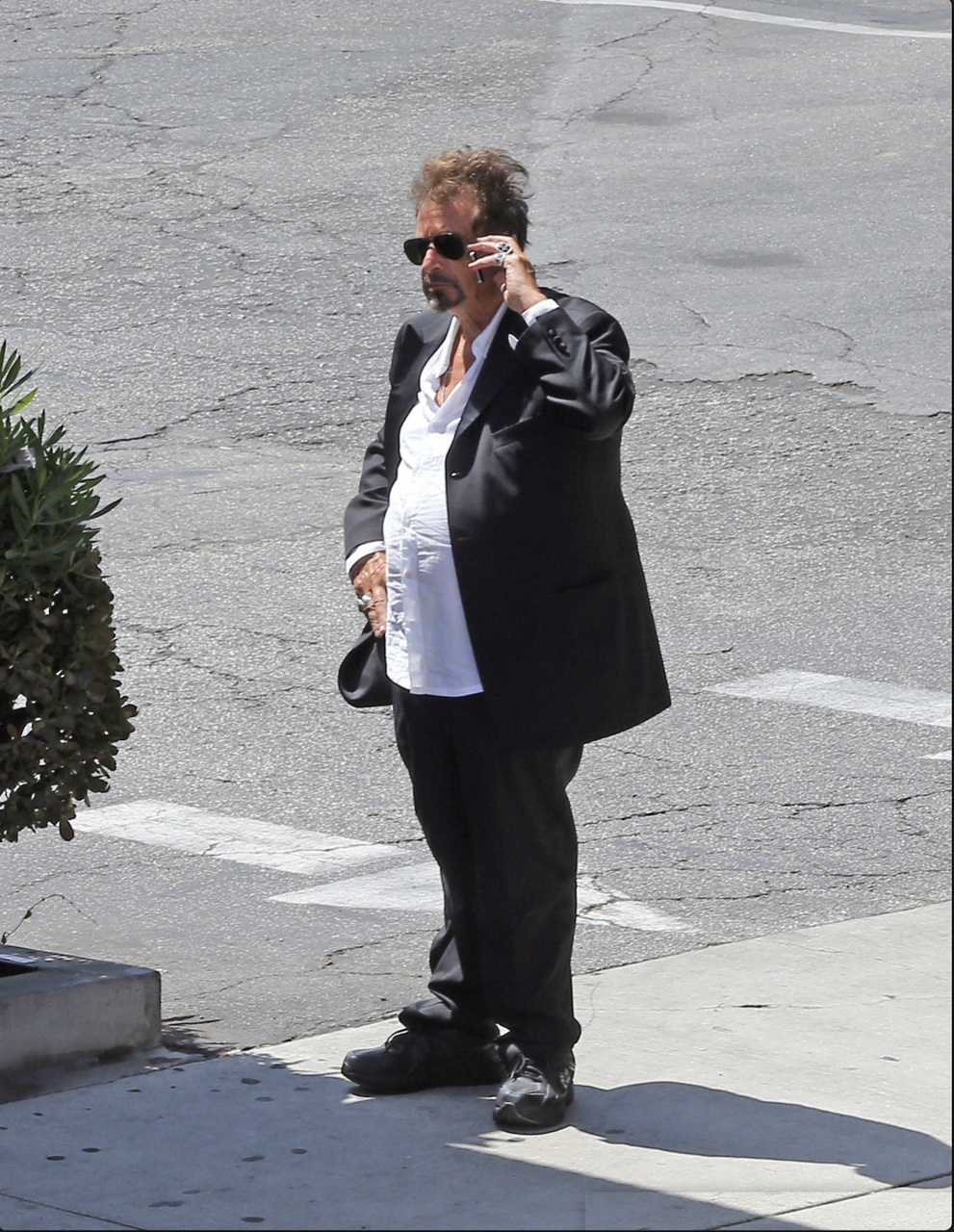 Что за убогости внизу и на ногах (еще и фул брогги примитивного дизайна)? И потом, если уж черную рубашку, ну хотя бы шелковую для шика, лоска, а не простецкое х/б.