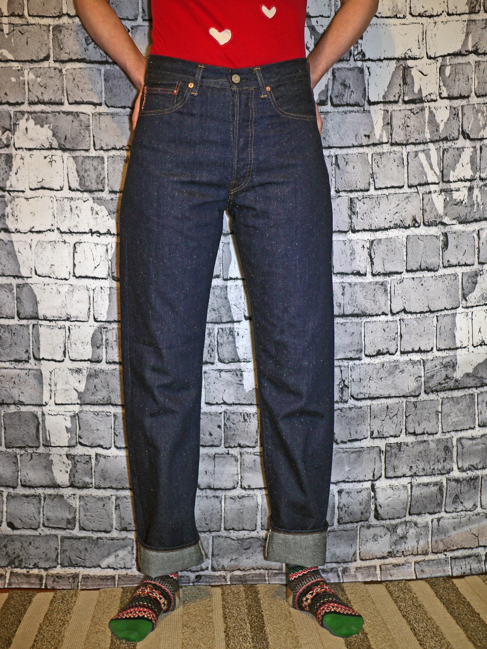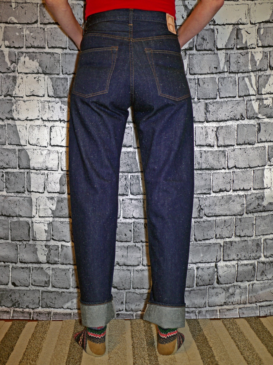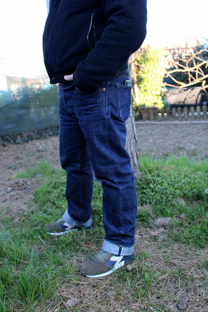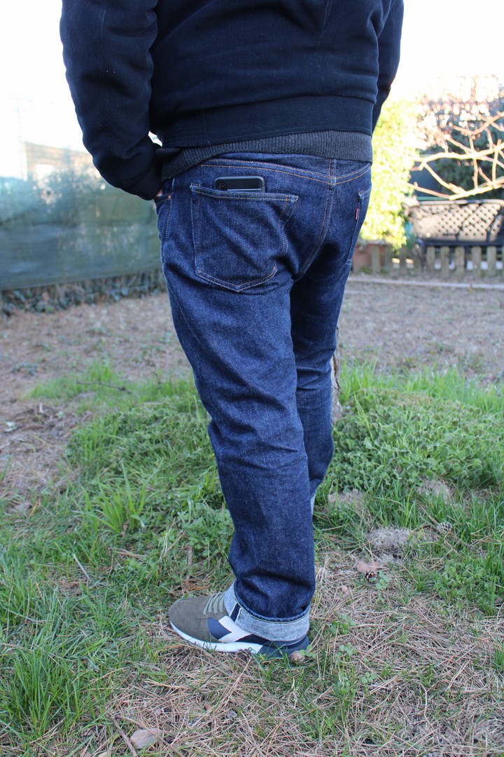 P.S. Год назад Дмитрий публиковал фото Robin Denim в таких штанах, но на нём они сидят почему-то как совсем узкие. Вообще производитель на сайте показывает три варианта посадки в зависимости от размера, и я исходила из среднего варианта (его и получила). Мне фит кажется похожим на Full count 1108, но ширше.