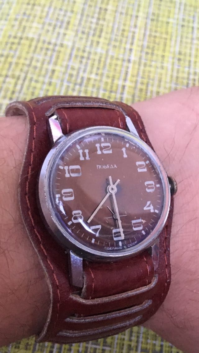 В связи с веткой закину фото Победки спасённой из мусора, у друга в кучке выброса. Ну, это так, для темы ветки. Так вот, меня, как жутко хронического часемана не отпускает один простой вопрос: мы, все жутко влюблённые в сей прибор измерения времени, просто сходим с ума от калибров, историй и историй фирм - япы, свиссы, ну и прочая импортная продукция. Я сам яполюб, ну есть несколько моделей фетешной болезни... Так вот, вернувшись к теме - есть , ну есть одна марка - ПОБЕДА, которая имеет нас как последних радукжных мальчиков. Спросите почему,,, отвечу: за что мы платим известным маркам - омега, лонжин, орис, таг, ну и доступные япы - за качество предоставляемой информации о времени - за точность. Теперь включаю дятла, простого юзера - точность, жизнеспособность ( а за жизнеспособность свиссов мы платим хренову кучу денег) и доступоность... Позволю вызвать волну тапозакидательства, но... есть и в нашем уголке краеугольгый камень "Победа"... Спрошу у каждого из вас: вы видели хоть один экземпляр нами любимые свиссы, япы после многих десятилетий лежания, стояния и просто забвения в рабочем состоянии от пары тыков заводного вала... Нет, не думаю, за редким исключением. А наши простые Победки начинают стучать в ответ и через 40 лет. Теперь самое интересное: Победы производства России _ та ничем не уступают ходом и точностью свиссам, на которые мы молимся и япам, на которые Будде горы воздвигаем... Нет, простой и дешёвый мех от СССР даёт такую же точность и через 30-40 лет без обслуги, что и дорожущие свиссы за сотни и тысячи зелёных. Теперь вопрос имеющим мозг - а за что?! За что мы так славим мехи узкоглазых и сырожёров вместо своей памяти и истории?! А ответа не будет... Свои ЗиМовские мехи готовы слить за так, но почки отдавшие за Омегу, сдохнем счастливыми... А так ли?!Ну относил я свисса и япа, ловя точность и толку? А кто-то за точность платит десятки зелени... ну может, я рад. А сам смысл прибора прохерен - точность. Победка даёт изумительное качество измерения... Да, нет лоска, но есть точность, харизма и результат - время. Теперь вывод за вами, смотрящими эту ветку. С уважением.