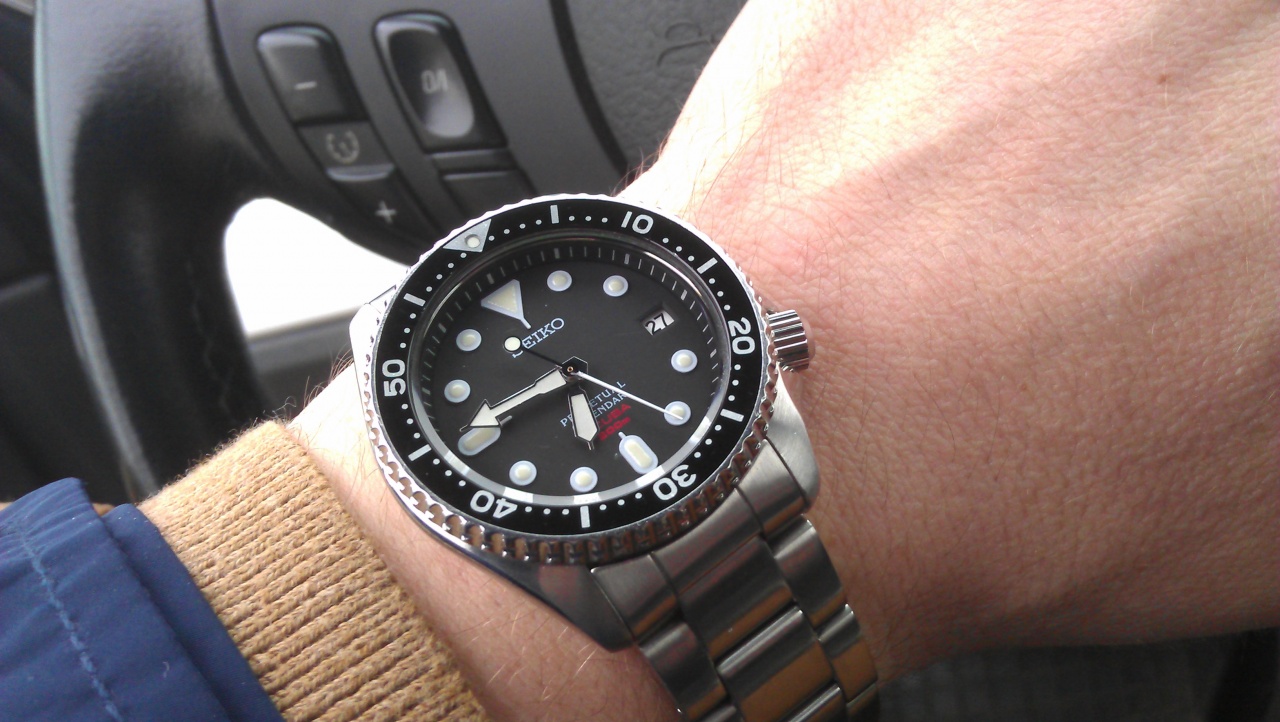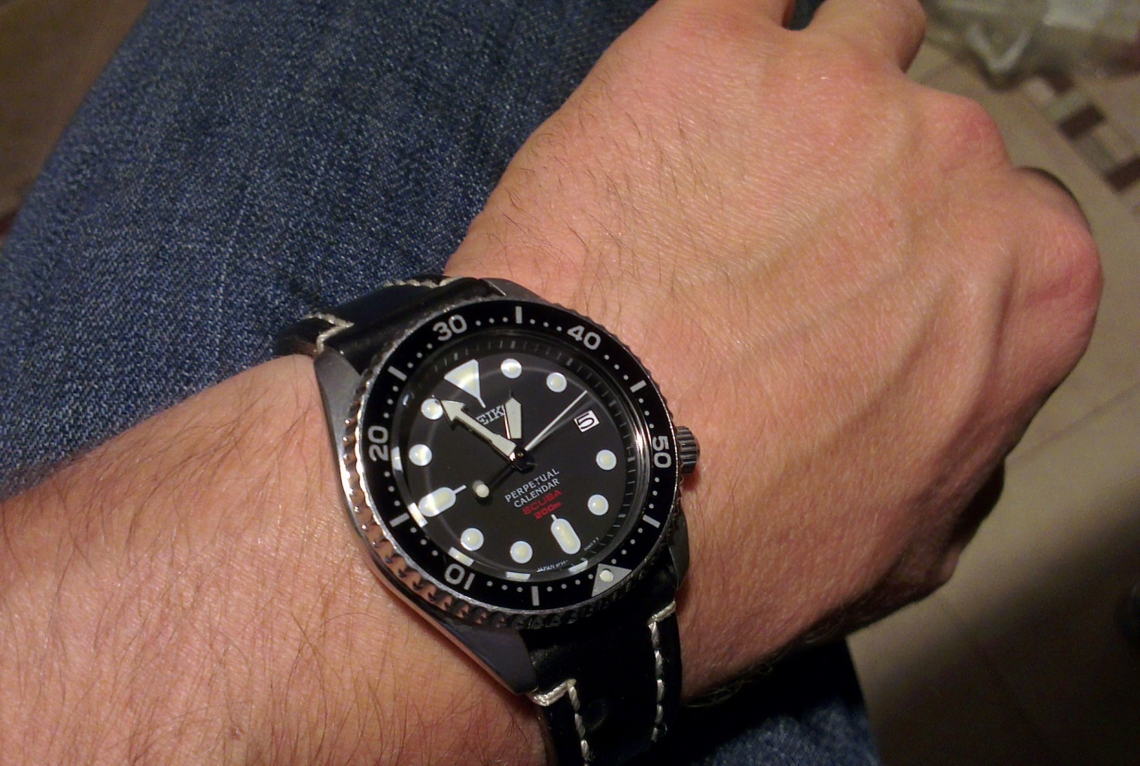 Первые мои seiko появились случайно- это внутрияпонский небольшой дайвер-prospex SBCM 023 с точным кварцем 8F35 (кстати- за 13 месяцев идут +11сек.). Рассматривал я тогда "сумо" или "альпиниста" и примерив их (SBCM) на руку, думал не брать- показались маловаты. Через пару дней привык, есть все же свой прикол в классическом размере часов. Часы замечательные, неприхотливые и очень точные. Потом были SKA 427P1- черный дайвер на кинетик, и недавно купил свою первую хотелку- черный сумо на браслете! Но это уже другая история... Фото первых SEIKO-