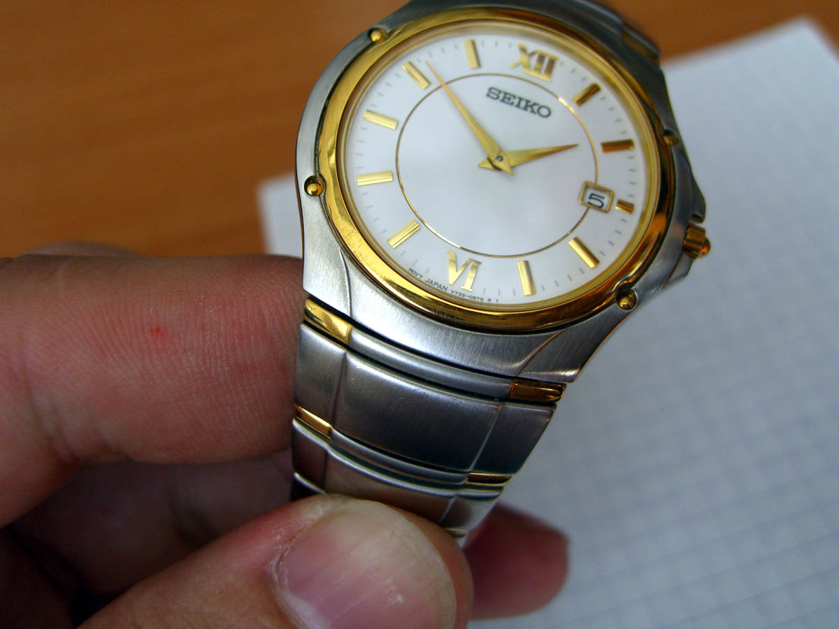 Вставлю свои пять копеек : ) Сейками пятыми или мега-сложными моделями сложно кого-то удивить - тем более что сложных-то у меня и нету )) Но есть забавная моделька, чем-то напоминающая линейку Ebel (ценители марки знают, наверное). Пошарил поиском - не нашел таких часов на форуме. Да как-то и вообще в сети. Вот такие: Seiko Accolade V739-0B30. Не уверен, что правильно назвал модель, но на крышке написано именно это ) Купил данный экземпляр несколько лет назд в США за совсем незначительные деньги, и только спустя время оценил их удобство: тонкий корпус, около 6 мм, весьма органично совокуплен с браслетом и ничего не цепляется ни за какие части одежды. При этом часы смотрятся одинаково стильно как под свитер, так и под запонки с французским рукавчиком, тем более, что запонки белые с золотом как раз нашлись. Короче, миленько так. Из всех Seiko, что мне пришлось держать в руках, эти самые... пытаюсь подобрать слово... мимимишные что ли. Мне нравятся Monster и вообще многие 5й серии (да и есть они даже в конюшне), но эти свою нишу явно занимают. То есть востребованы. С ними совершенно не стыдно вылезать на какие-то тусовки, где предполагается присутствие Омег и Брайтлингов ) Как минимум не пугает возможность встретить такие же - пока ни одного случая. Единственный найденный минус (и то не уверен, что его так можно назвать) - отвутствие секундной стрелки, но это и все, собссна.