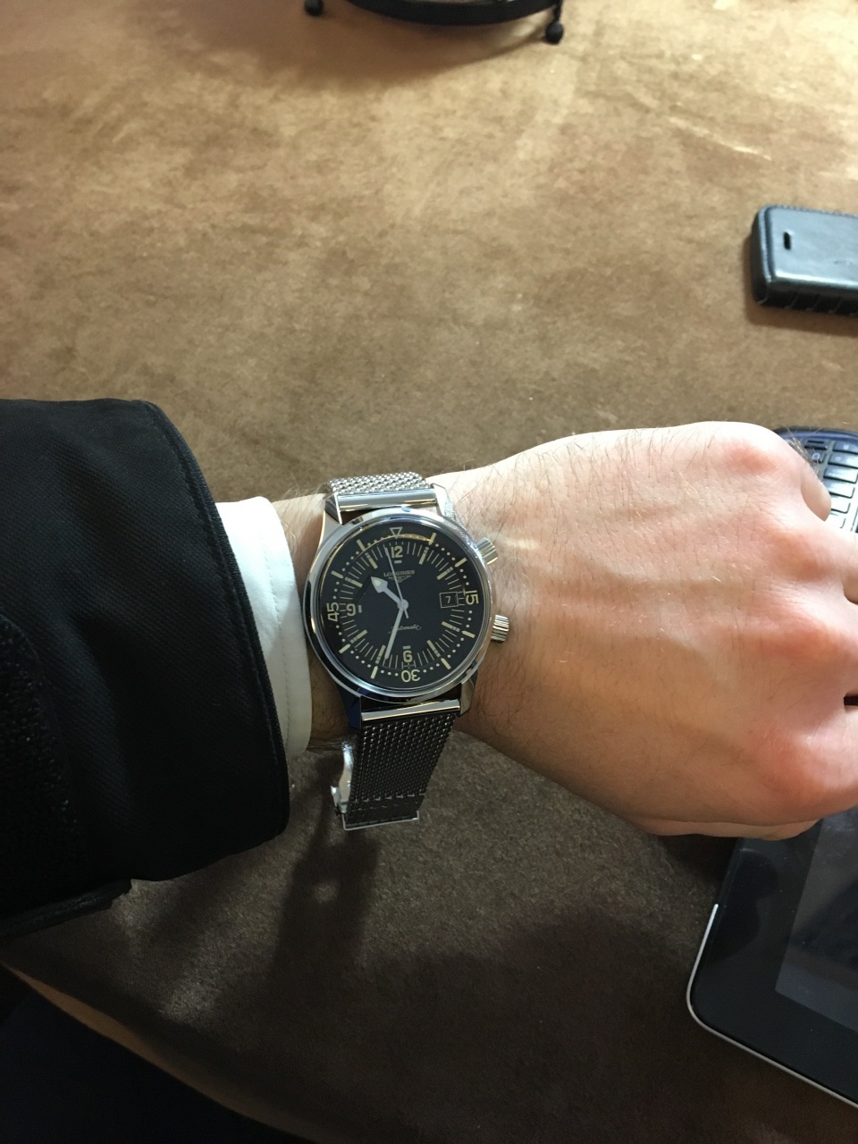 Что ж, сегодня был в магазине, примерял варианты. До поездки в магазин для меня Радо был фаворитом, а Таг отставал но совсем на немного. Но на руке всё оказалось не как на фото в интернете (кто бы мог подумать?). И по сугубо моим ощущениям Радо мне подошли меньше всего из трёх вариантов (Гидра, к сожалению из соревнования выбыла). Зато меня крайне сильно удивила Легенда, в хорошем смысле. Таг оказался крепким претендентом и в моём восприятии остался на том же высоком месте. Но проблема теперь определиться со стилем: винтаж или спортивный стиль. И то и то для меня привлекательные направления. Существует даже некоторая вероятность, что купив сейчас одни из двух, позднее я куплю вторые. А пока немного фото с примерки. К сожалению в наличии не было Тагов на браслете и с синим безелем и цифером, поэтому мерял, что было максимально близко.