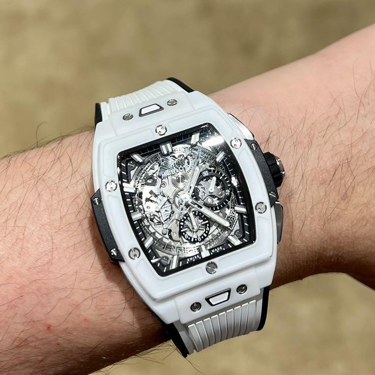Вы предпочитаете более изощренные и мануфактурные механизмы и вам это важно? Пожалуйста. Начиная от коллекции Big Bang Unico - вы можете получить скелетонизированный хронограф с «лицевым» (что редкость) расположением колонного колеса. Не клон другого механизма, разработан с нуля. Интересная современная отделка (не плохая, не «дешевая», а просто своя и современная, отличающаяся от классической эстетики Patek и Lange, конечно, в том числе и ценой). При этом прекрасный ход кнопок запуска хронографа. Очень «породистый». Кому нравится этот момент - вполне сможет оценить.