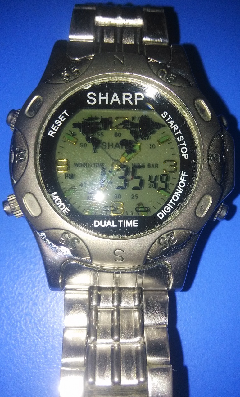Это совсем не тот Sharp, который все знают - тут даже шрифт логотипа другой.  Под этой маркой продаются самые дешевые часы и еще кое-какая мелкая белиберда. В США, как ни странно, такая продукция довольно часто встречается. Продается в тех же местах, что и Armitron, например. Основные покупатели: те, кому жалко денег на простейший Timex. Да и просто такое своеобразное паразитирование на всемирно известной марке.