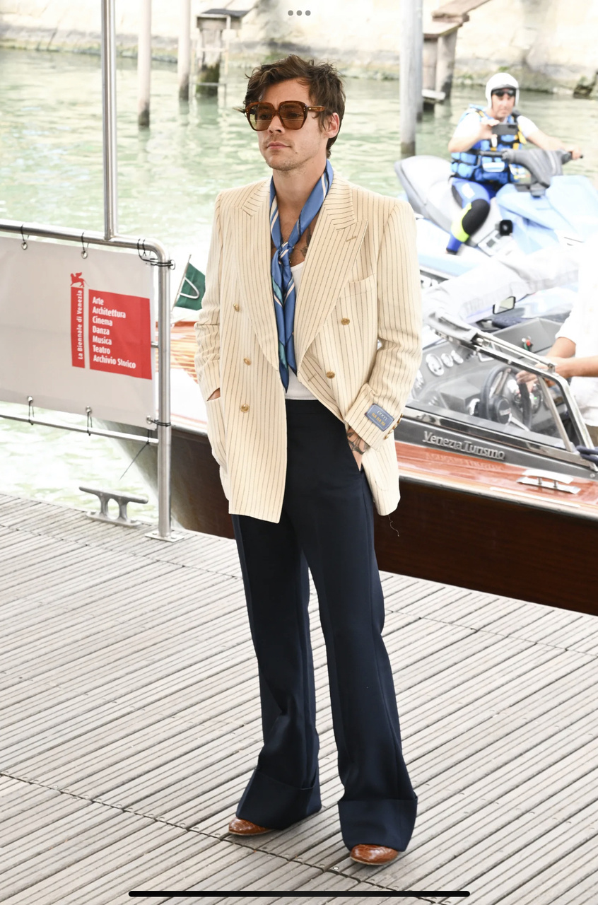 Все написанное безусловно указывает на высокую степень посвящения автора в "нью вольные каменьщики". Ключевое словосочетание - тайский палисандр. Лукавый автор, лукавое фото. Челси, сшитые на заказ из кожи рептилии, брюки из марочной(???) шерсти... Кстати, брюки на пять, а то и семь сантиметров длиннее, чем нужно. Впрочем, избыточную длину брюк можно объяснить нежеланием автора расстаться с несколькими драгоценными сантиметрами сногсшибательной пары. Но вернемся, сами знаете, к чему- обувь, низ штанов, и отсутствие какого бы то ни было верха, - это не лук. На мой взгляд, все перечисленное и визуализированное обладает настолько ощутимым зарядом претензионности, что все остальное неизбежно уходит в зону непредсказуемого риска и благоразумно опускается автором-производителем. Надеюсь, что имярек не отправился в бар слушать музыку с голым торсом. Одновременно меня страшит то, что выше.