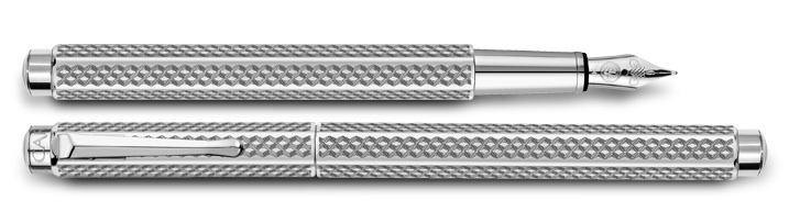 Жене долго пытались найти подходящую ручку (длинная, не очень толстая, перьевая). Mantgrappa, Montblanc, Dupont Parker не понравились (то недостаточно строгая, то слишком толстая, то слишком короткая и т.д.). Потом зашли в магазин за новым стержнем для моей, жена увидела Caran D'Ache с графическим дизайном, попробовала на бумаге... Ну и сразу подобрали чернила цвета Storm.