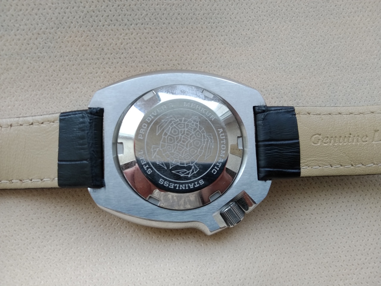 Вообще-то "Меркур" фирмА известная в мире хомажей на сейко. И там всегда была задняя крышка с очень симпатичным и сильно рельефным пиратом. Черепаха. как по мне - совсем уж сильно проигрывает. Опять же если знать про Сертину...