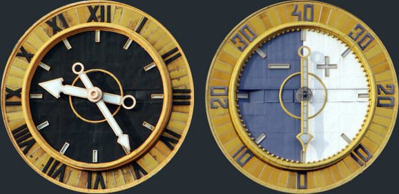 Университетские часы смотрят на все стороны света, на каждой башне по два циферблата (часы и барометр с термометром). Инженеры их так и называют: Восточные часы, Северные, Южные и Западные.