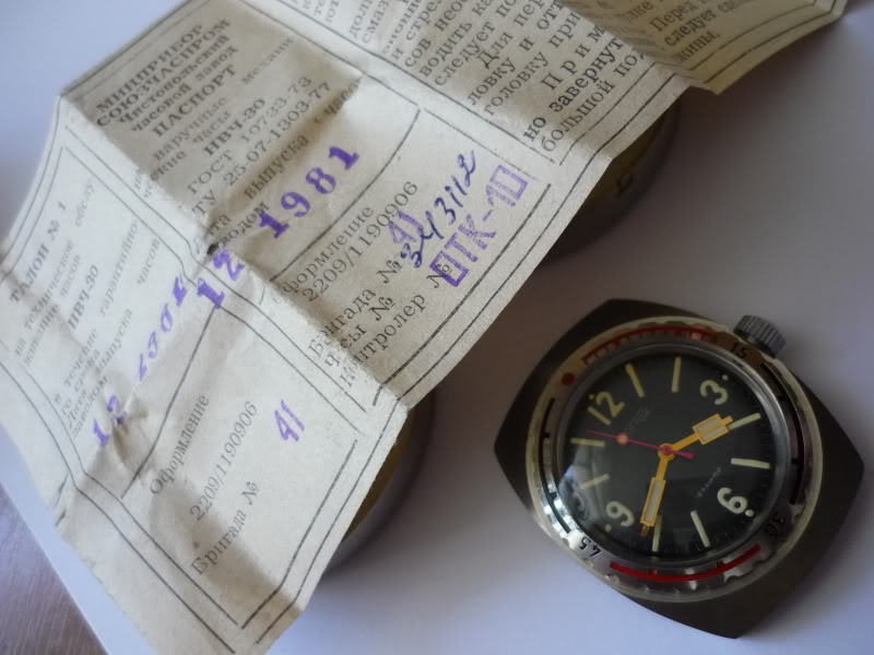 Кстати, по-моему, на первых бочках НВЧ с ф-образными стрелками и надписью "противоударный баланс" изначально шли головки округлые хромированные до 1983 года (как на 200-метровых собратьях с белыми ф-образными стрелками), пока не выпустили головки со стальным обжимом. Потом их могли массово заменять на нерж. при обслуживании в мастерских флота. Второй тип бочки НВЧ (с белыми острыми стрелками) вышел уже со штатной нерж. головкой.