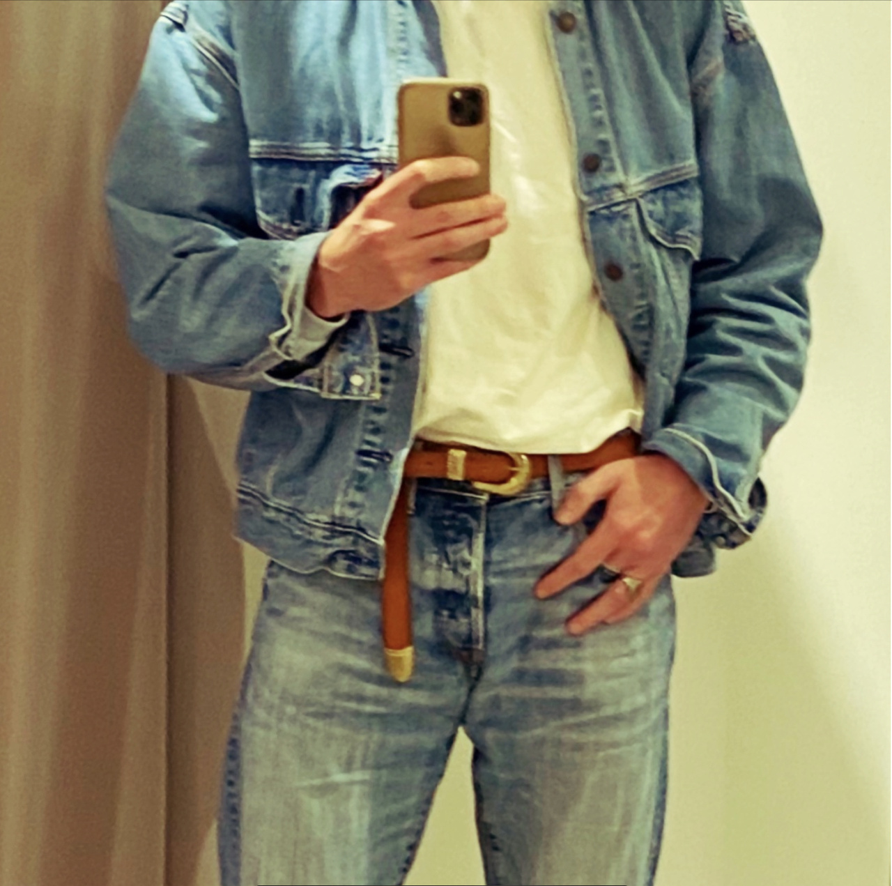 Этот ремень добавляет строгости во внешний вид, что противоречит общей направленности и самой идее. Единственное что бросилось в глаза: удлиненная пряжка и металлическая оконцовка ремня (под нее тогда уже просится шляпа).