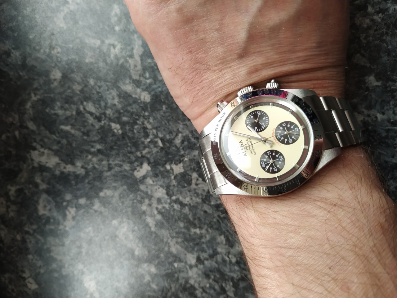 Начну с корпуса часов - 41мм, по ушам 50мм, ширина браслета 22мм, за счёт всего этого часы выглядят чуть вытянутыми, так сказать сливообразной формы (я вообще люблю браслеты от 22мм).
