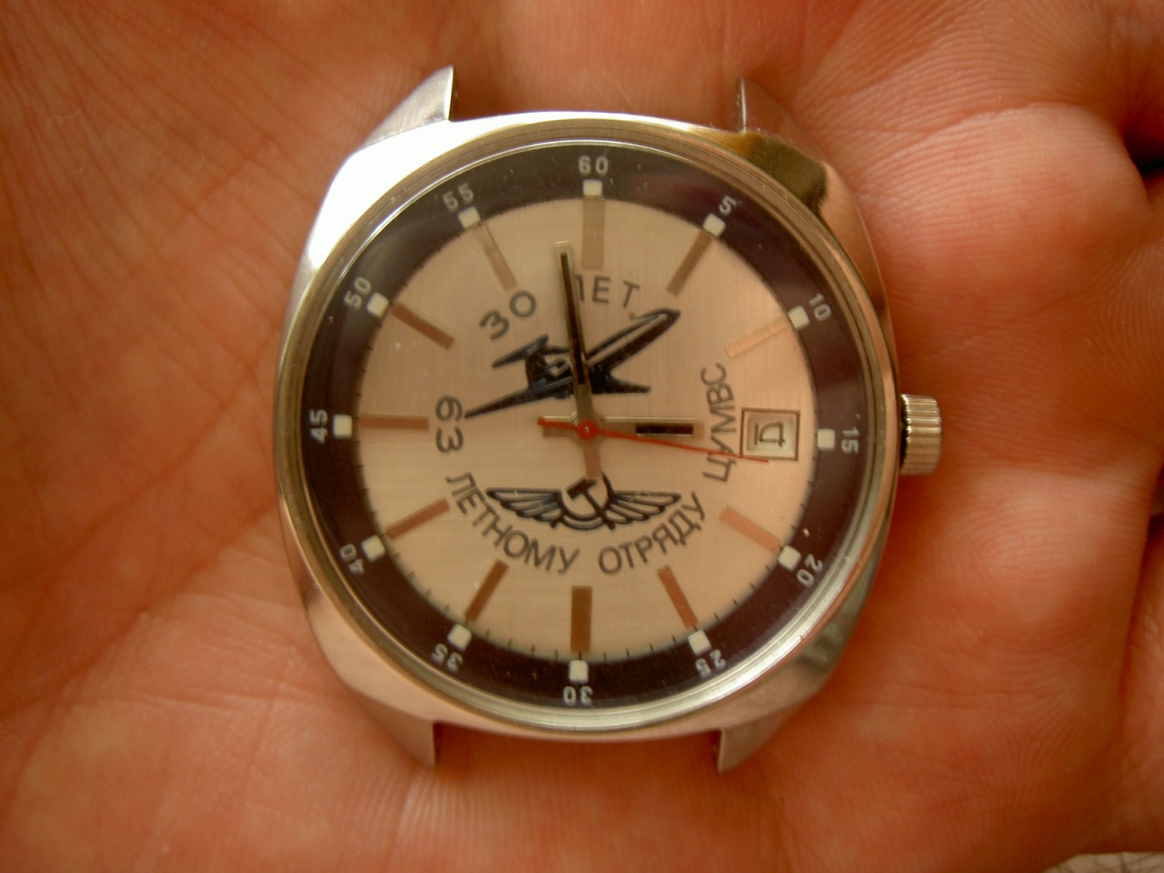 Кроме экспортных Полетов конечно были и русскоязычные незаказные. У меня, к сожалению, только англоязычные, а на фото Нетграфик-русскоязычный обычный. На черных циферблатах ставились хром. секундные стрелки, на белых-покрашенные в красный цвет.