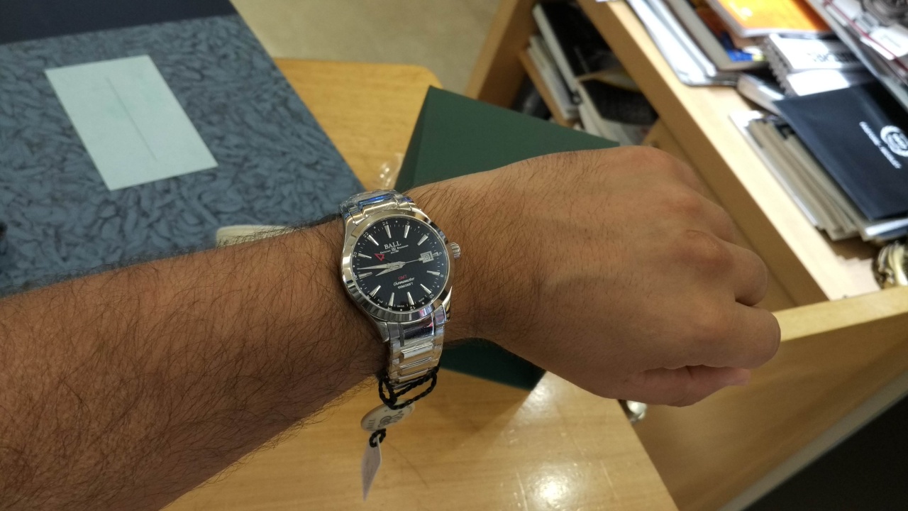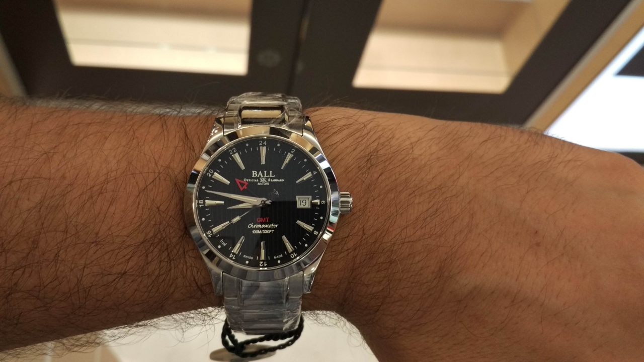 В конце концов выбор пал на Ball Engineer II Chronometer Red Label GMT - нравился и визуально (на картинках), и история компании прельщала, и был ГМТ, и 100м защита, и магнитная защита. Оставалось посмотреть на него вживую - и вот это оказалось проблемой. Ни в Киеве, ни в Франкфурте, ни в Лондоне, ни еще в нескольких европейских городах найти не получилось. И вот перед поездкой в Женеву написал производителю (у ритейлера в Женеве тоже не оказалось). Оказывается, их выпуск прекратили 2 года назад, но остался последний экземляр, который послали по моему запросу с фабрики в магазин в Женеве.