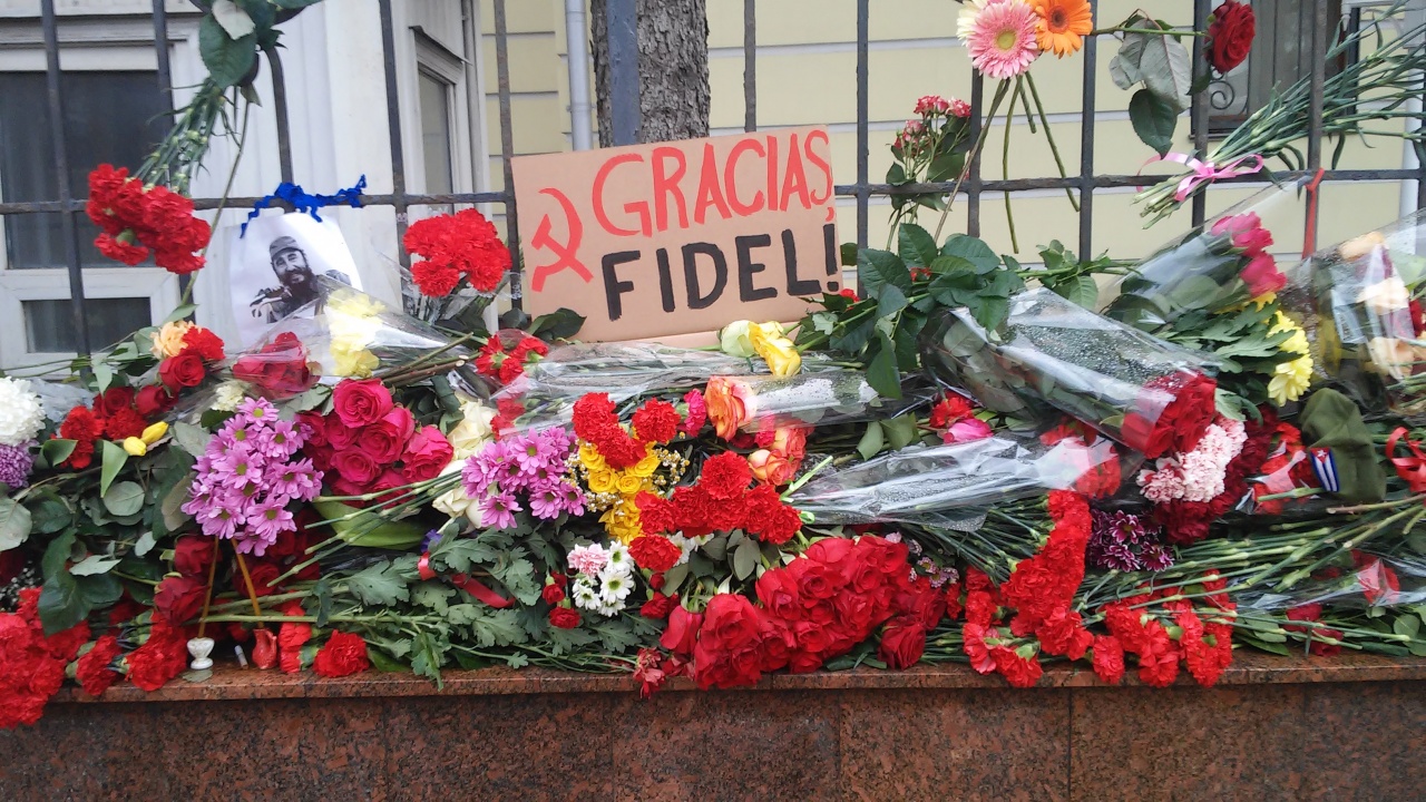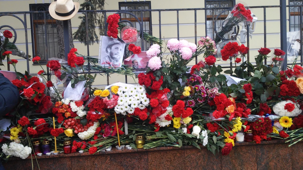 За обителью посольский городок. Практически в виде крепости с заплотом, колючкой и чуть ли не пулеметами на вышке посольство Израиля. Потом аргентинское, узнаваемое по матрацному флагу, всем хорошо знакомому по фотографиям Марадонны. Киргизское, с дыркой от юрты на флаге. И уже почти на выходе - героическое кубинское, совсем недавно пережившее наплыв почитателей главного вождя Майдана ХХ века - Фиделя Кастро. Был там и я, правда, без цветов. Но цветов (а также фотографий и сигар) там было и без меня множество. Говаривали, что туда нести и кубинский ром, но его я не видел, врать не стану.