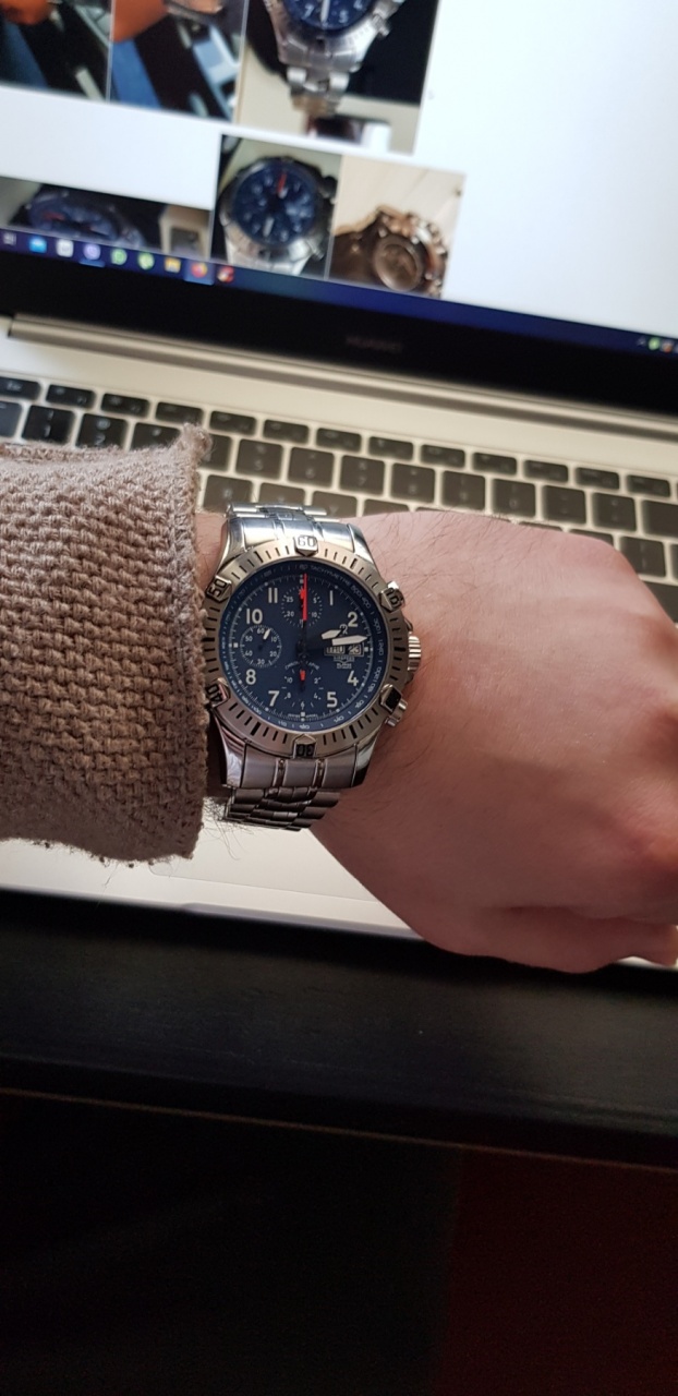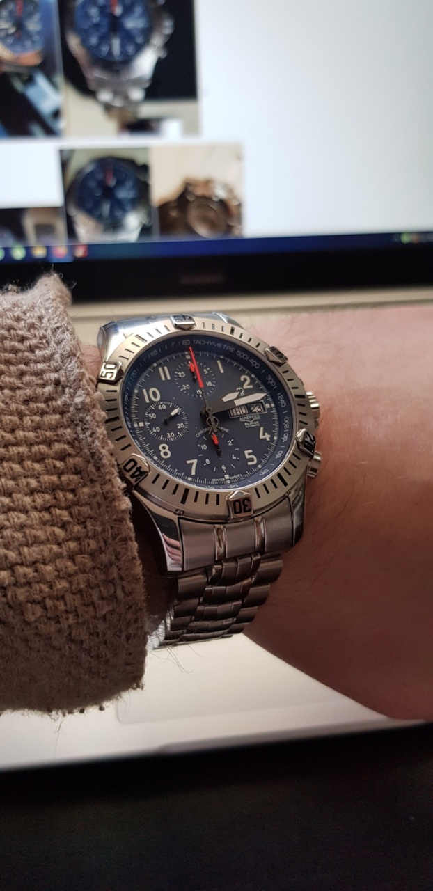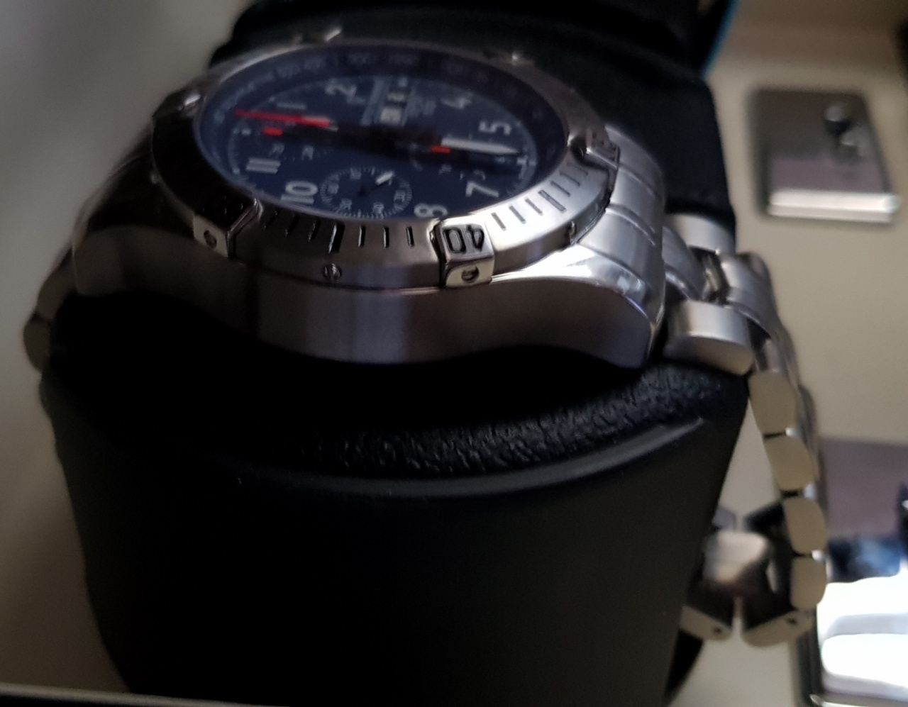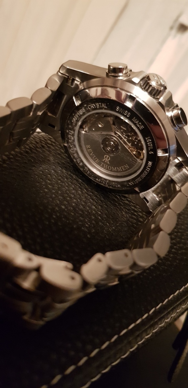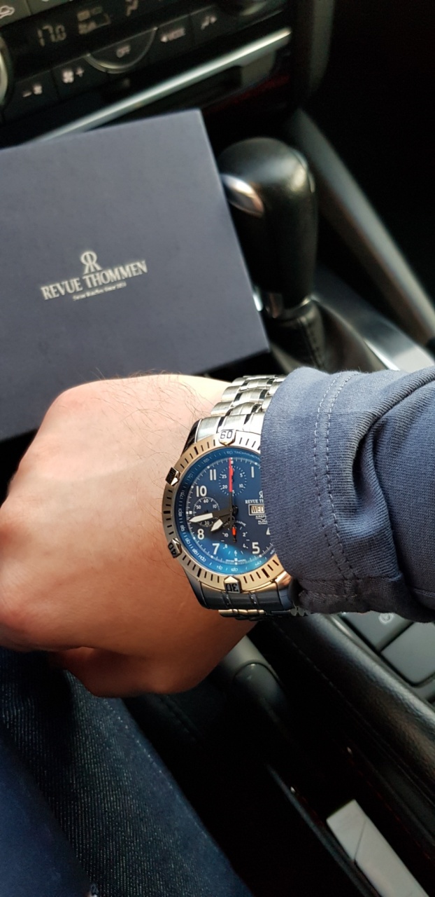 Классный браслет, но нужно отрегулировать, поэтому фото на руке предварительное. Я б к ним еще каучук оригинальный взял, но найти не смог. Написал в Revue Thommen, обещали поискать)