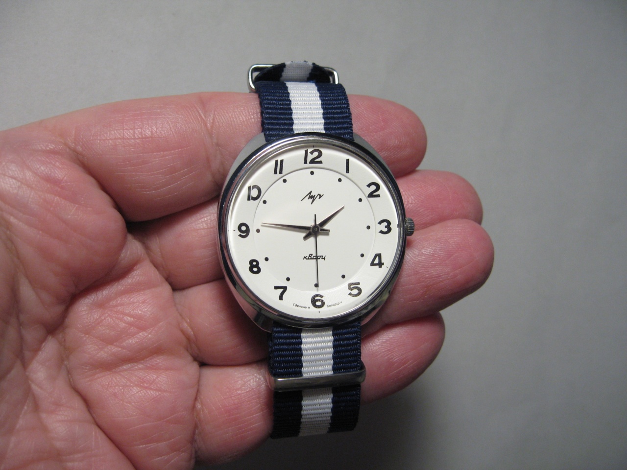 Комментарий: Приобрел часы Луч 92849942 в вашем магазине. Что касается интернет магазина, то пожаловаться не могу, товар доставили исправно за три дня в СПб. Единственно замечание, - при покупке обещали вернуть 200р. на телефон за отзыв о предыдущем заказе на Яндекс маркете, но так и не вернули, хотя отзыв я разместил и на сайте тоже. Итак номер моего текущего заказа №9414444. Теперь о часах: фото на сайте не вполне соответствует реальному облику часов. В описании написано, что и корпус и браслет из титана, это не так, браслет нержавейка, притягивается к магниту всеми частями браслета. Браслет узкий, в самом широком месте 18мм. ! Звенья браслета имеют плетение отличающееся от фотографии на сайте в сторону упрощения. Звенья гуляют относительно друг друга как на самых дешевых китайских часах из ларька. Ощущение дешевизны не покидает ни на минуту. Настройка браслета возможна только в пределах 1-1,5 см. Вообщем болтаются часы на руке при самых минимальных настройках. Теперь сами часы: Корпус выполнен из серебристого металла похожего на титан, даже отполирован. Но всё впечатление портит безель, выполненный из никелированной латуни, где после обработки на фрезерном станке остались задиры металла, которые пытались удалить с помощью напильника на производстве и поэтому из под никеля проглядывает латунь. Далее, есть надпись "Амфибия", но водозащита 30м только от брызг! Из минусов - регулировка дня недели производится в помощью настройки стрелок, то есть надо тупо вращать их несколько десятков раз по кругу для достижения результата. Циферблат часов на мой взгляд маловат, но видимо производитель планировал выпускать модель с большой водозащитой и , чтобы расширить ассортимент товара решил заодно сделать в том же дизайне часы без водозащиты. Задняя крышка закрывается простым защелкиванием,сделана из нержавейки довольно грубо,имеет множество производственных царапин, которые пытались без особого усердия заполировать.