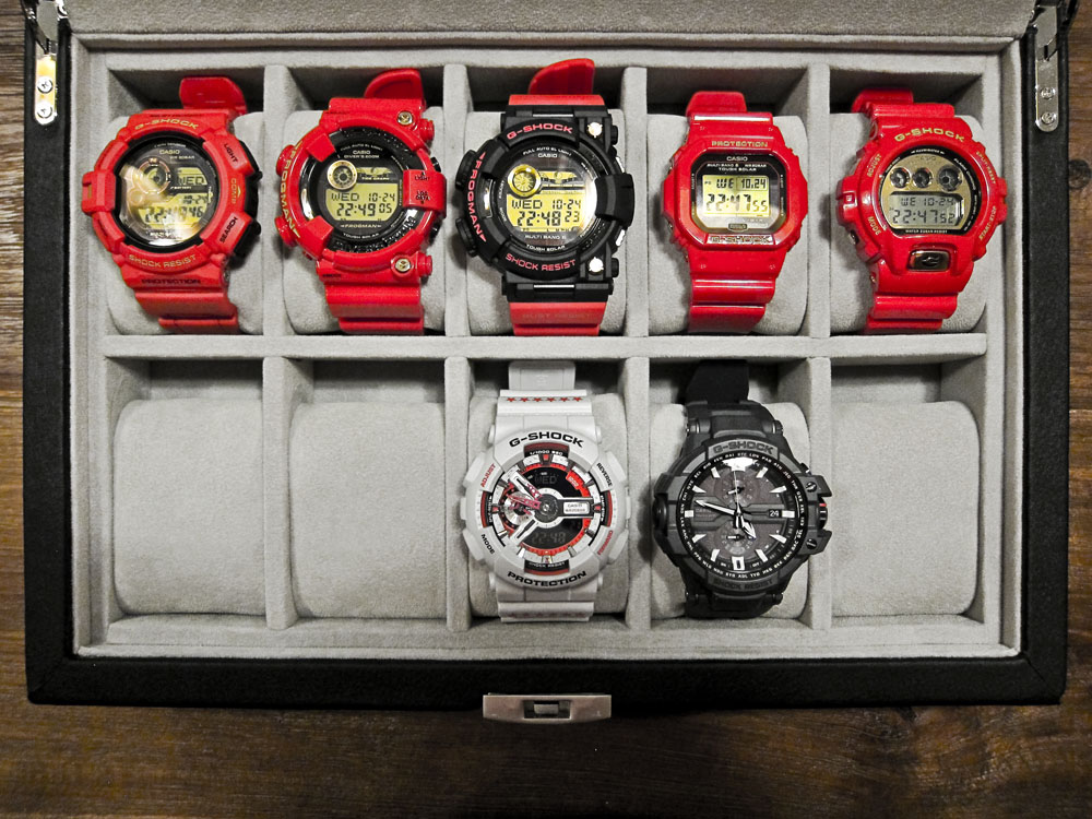 Ношу джи шоки - c 1992 года Сейчас в наличии: CASIO DB-E30D-1AVDF G-Shock: GX-56-1AER, G-9300, GW-9200-1ER, G-9000, GW-7900B-1JF, G-9200GY-1E, GD-350-1BER, GD-100PS-3ER Pro Trek PRG-50. Traser P96. Luminox 3501