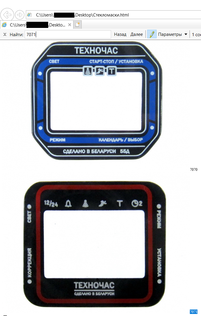 , где изменяемая часть - код модели. Это относится не только к часам, но, например, ассортимент стекломасок тоже можно получить. Простая идея - создать локальную html-страницу (файл) и открыть её в браузере: ссылки браузер заменит на фотки, а поиск у него встроенный.