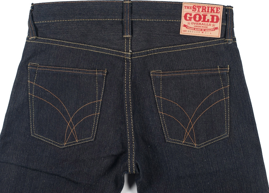 Такой производитель, как Strike Gold уже довольно длительное время известен любителям и ценителям традиционного денима, однако марка в онлайн продаже не представлена так широко, как их коллеги по цеху. Бренд этот родом из Окаямы, он создан братьями Хамамото, более 20 лет до этого проработавшими в деним-индустрии. Strike Gold отличает весьма серьёзный подход именно к производству денима для своих джинсов. Они используют как выразительную рельефную слабби текстуру, так и совершенно ровное полотно, есть джинсы с окрашенной нитью утка (которая как правило остаётся неокрашенной у джинсовой ткани). Детали характерны для японского направления традиционного денима - кожаные патчи, ред-табы, заклёпки и болты и др. элементы, отсылающие нас к временам джинсовой классики ХХ века. Strike Gold активно используют как репро-фиты, так и современные слим-фасоны, для тех, кто хочет получить хорошо сидящие, но при этом действительно качественные джинсы с ремесленническим подходом к производству. Джинсы этой марки дают красивый и контрастный фейд по мере износа.