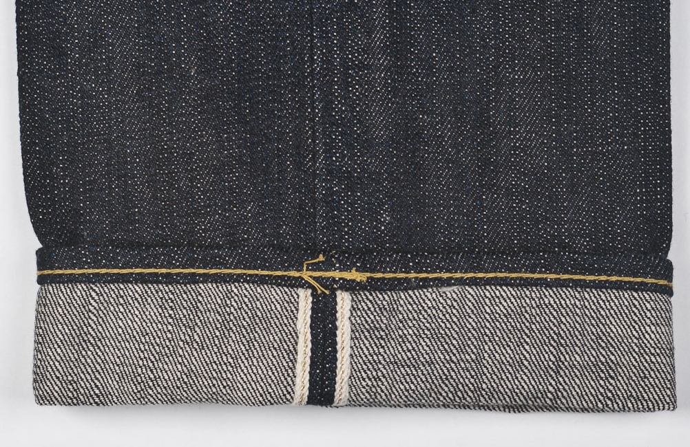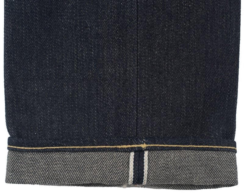 Здесь использован 17OZ деним с левосторонним плетением, в котором сочетаются нити основы, окрашенные чистым индиго и серые (неотбеленные) нити утка.