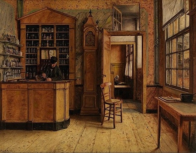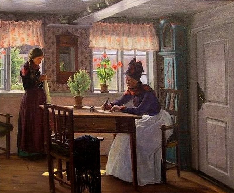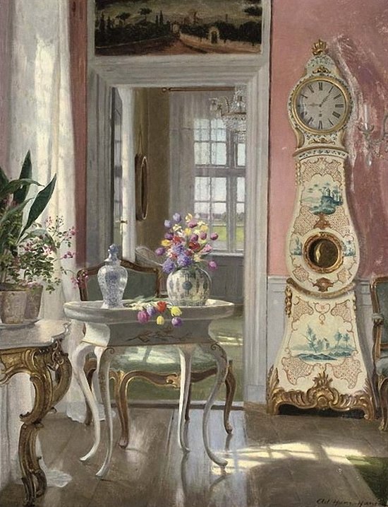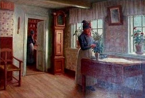 Adolf Heinrich Claus Hansen Interiør med kvinde.