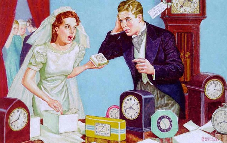 Revere Wistehuff Newlyweds receive many Clocks as Wedding Gifts.
