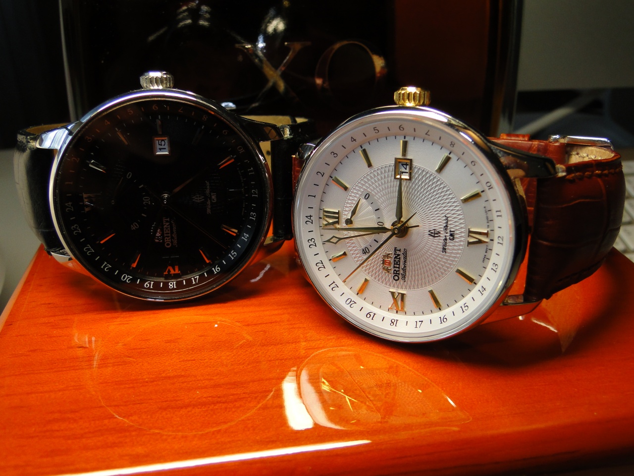 Orient Deep 65 Orange, Orient CEY04002B0, Orient FDJ02001W0, Orient CFAAA002D0, 2x Auguste Reymond, 3x Tissot, Casio LineAge и т.д. Со мной всегда двое часов: одни - на руке, другие - в голове, т.е. ну те, которые я куплю следующими (R)