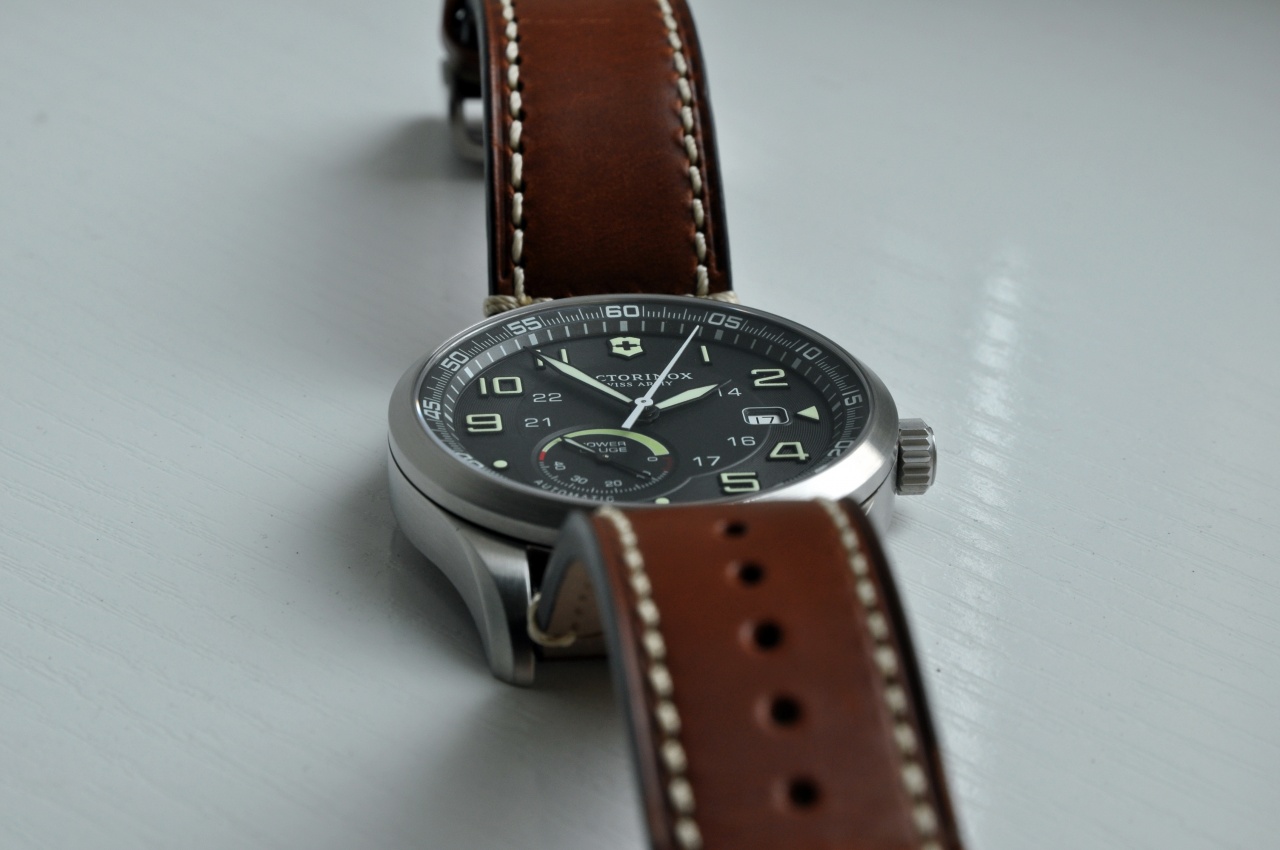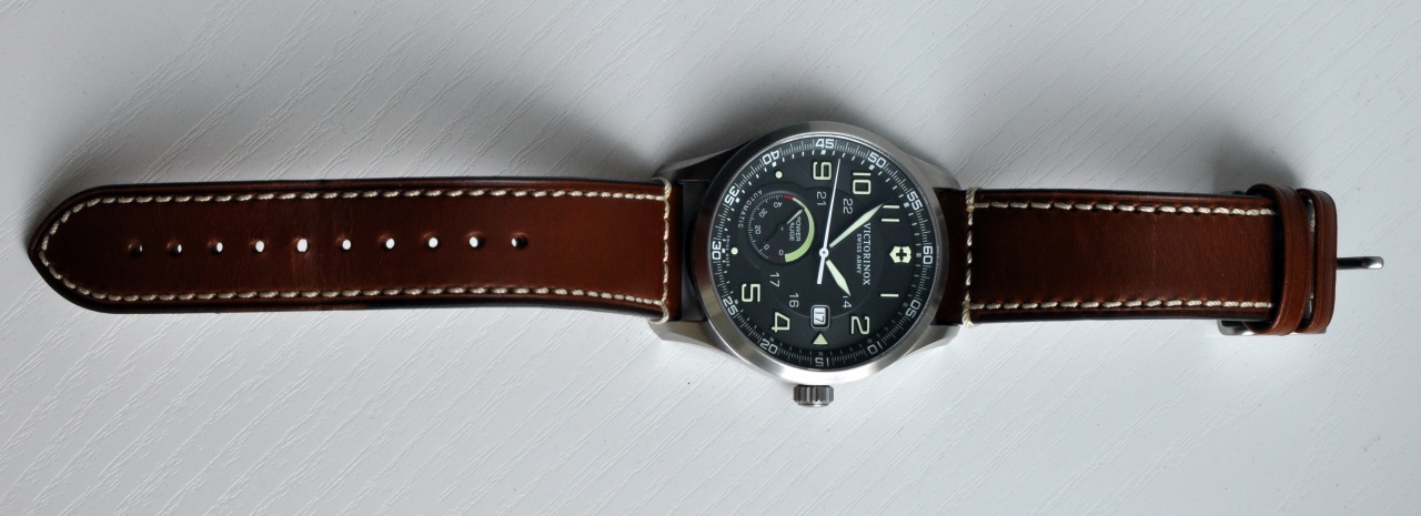 Ремешок сделан очень добротно. Жесткий, но не чересчур, по мужски суровый, но руку не натирает и о себе не напоминает, прострочка брутальная, но идеально точная. Претензий нет.