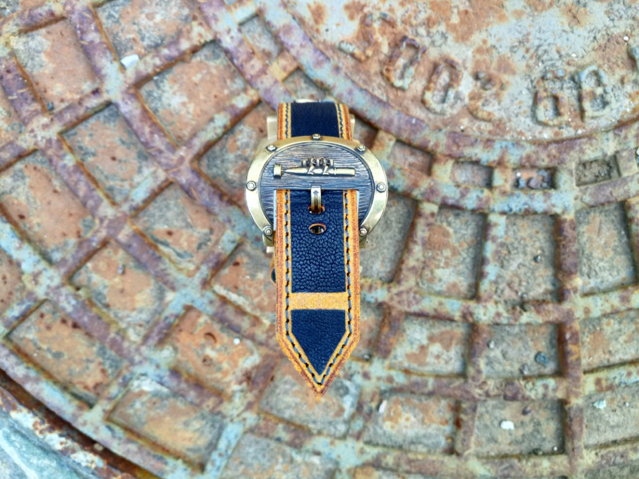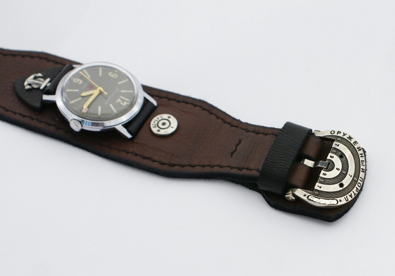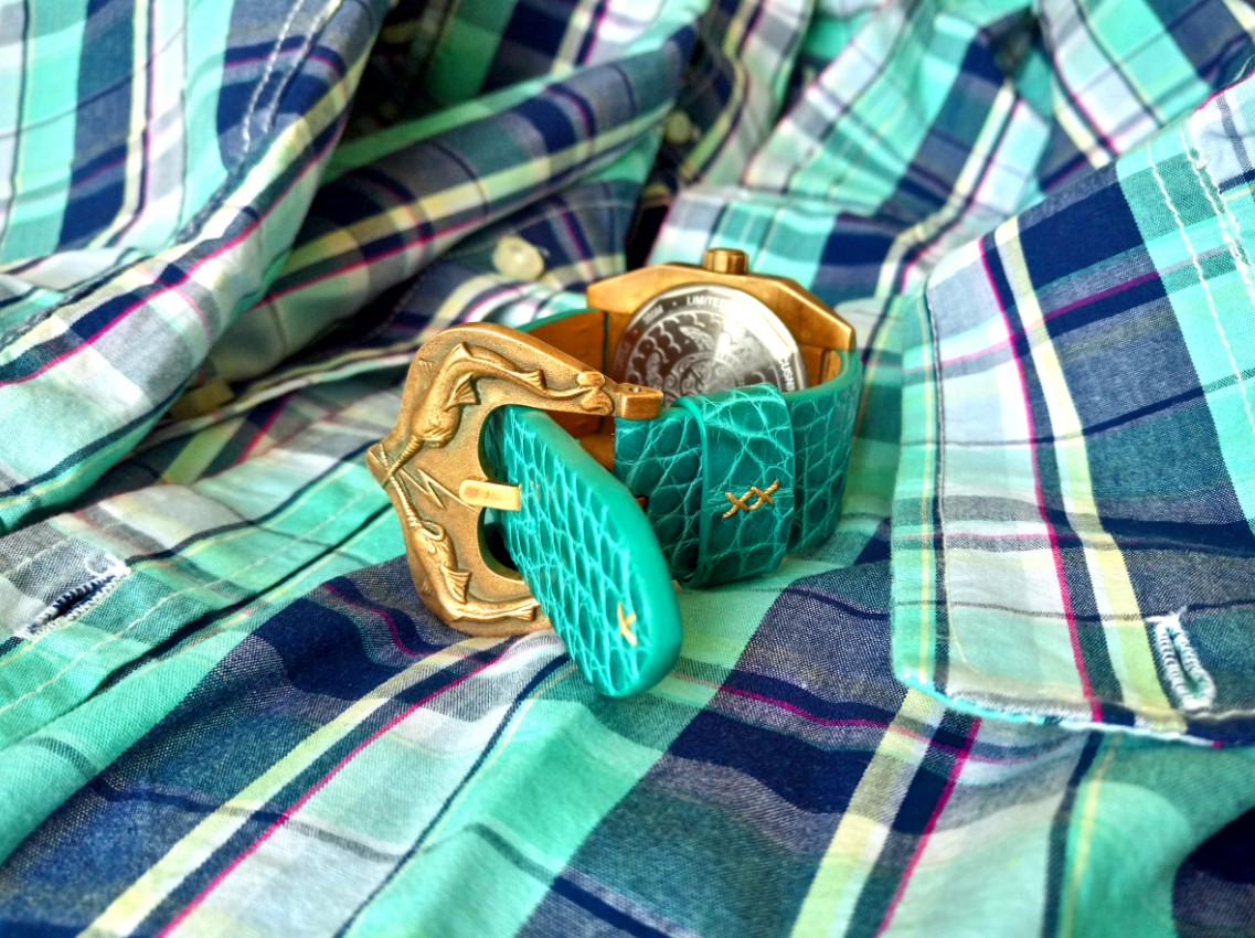 | Часы Gruppo Gamma на зеленом теленке, пряжки из меди/латуни в стиле "стим-панк". |