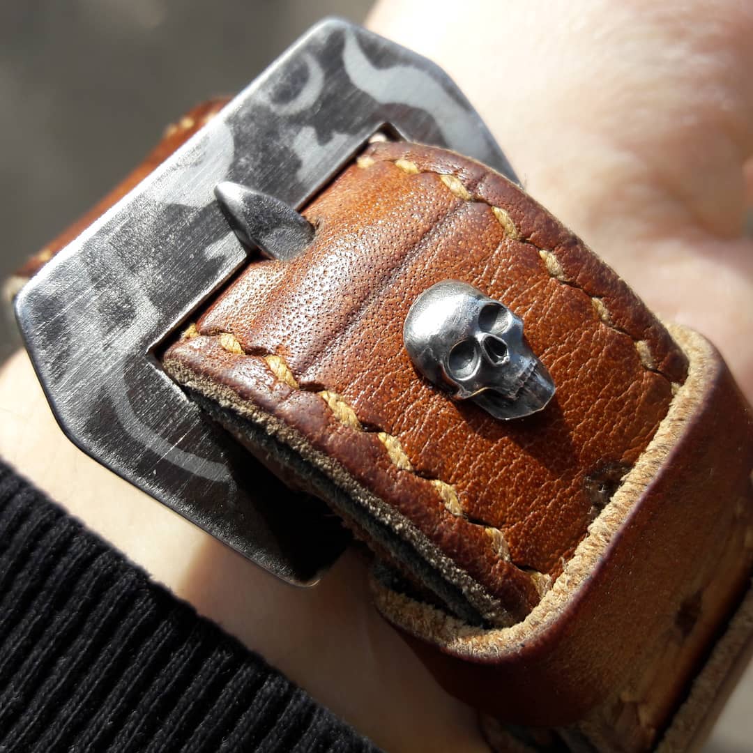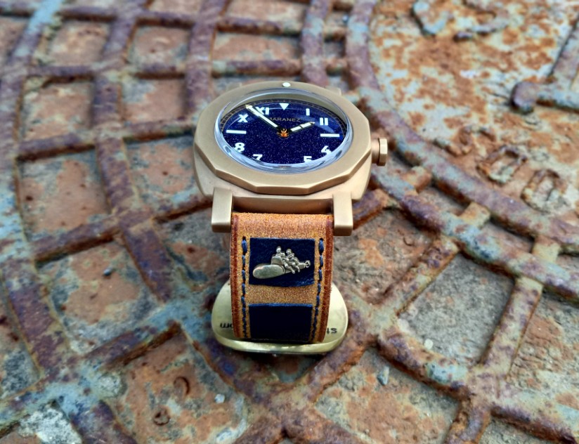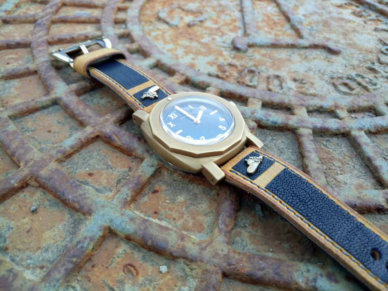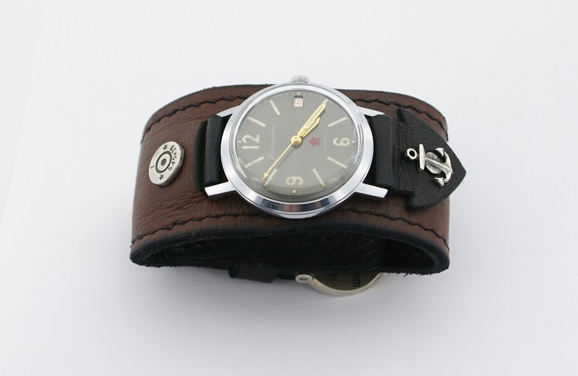 | Часы Gruppo Gamma на зеленом теленке, пряжки из меди/латуни в стиле "стим-панк". |