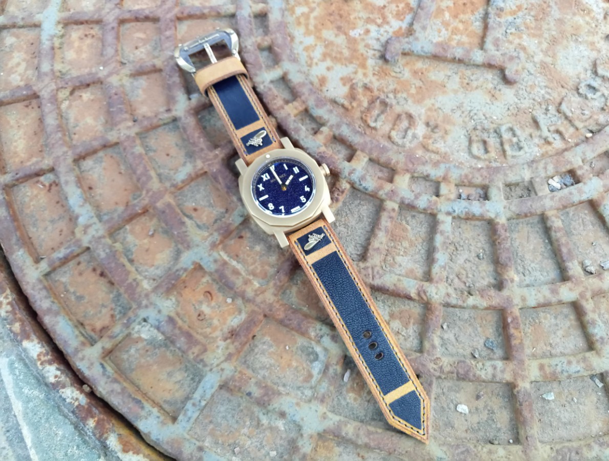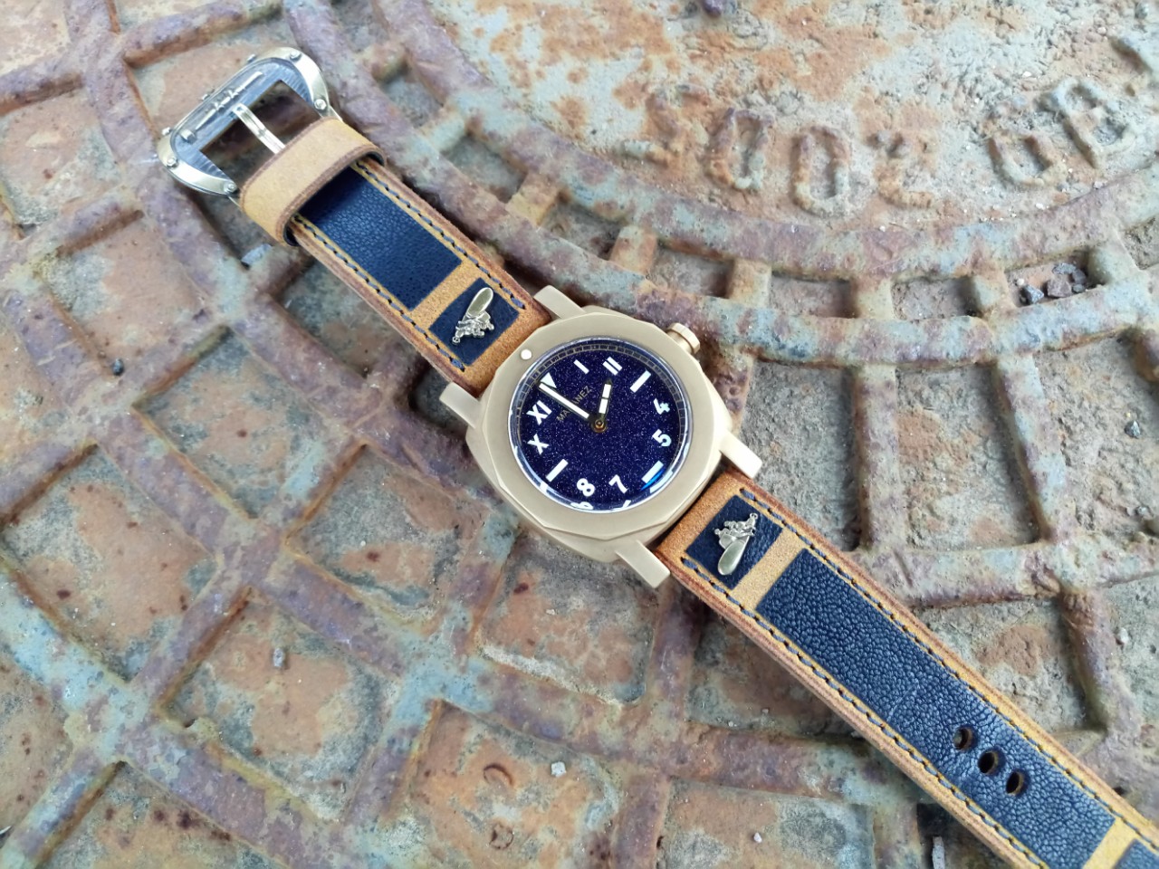 | ПАМ 359 на джинсовом ремешке, титановая перегретая пряжка. |