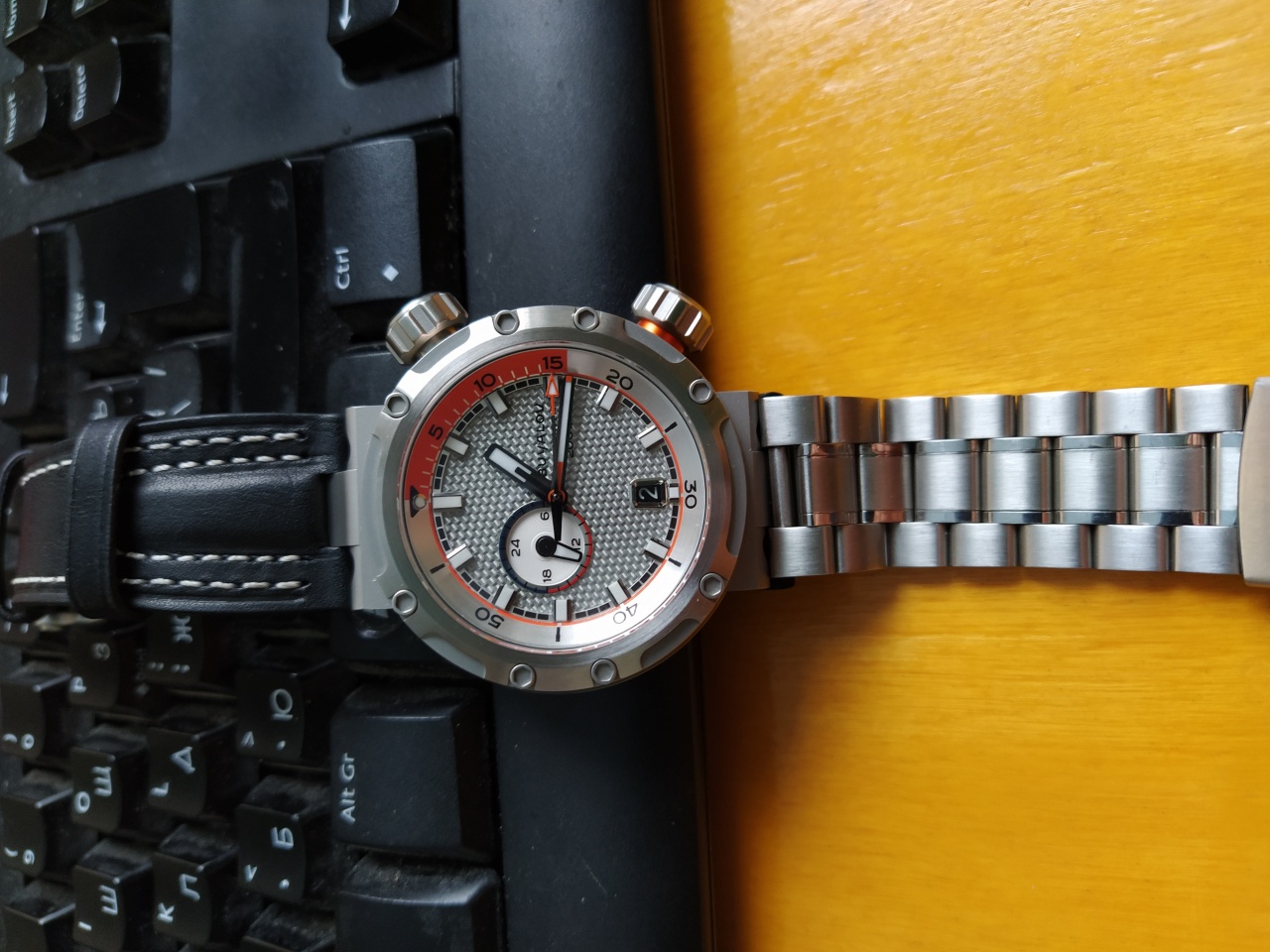 Потом прошло месяц-два, дай, думаю, заменю резиновый ремень на RR01 на тот кожаный, что был в комплекте Акулы.
