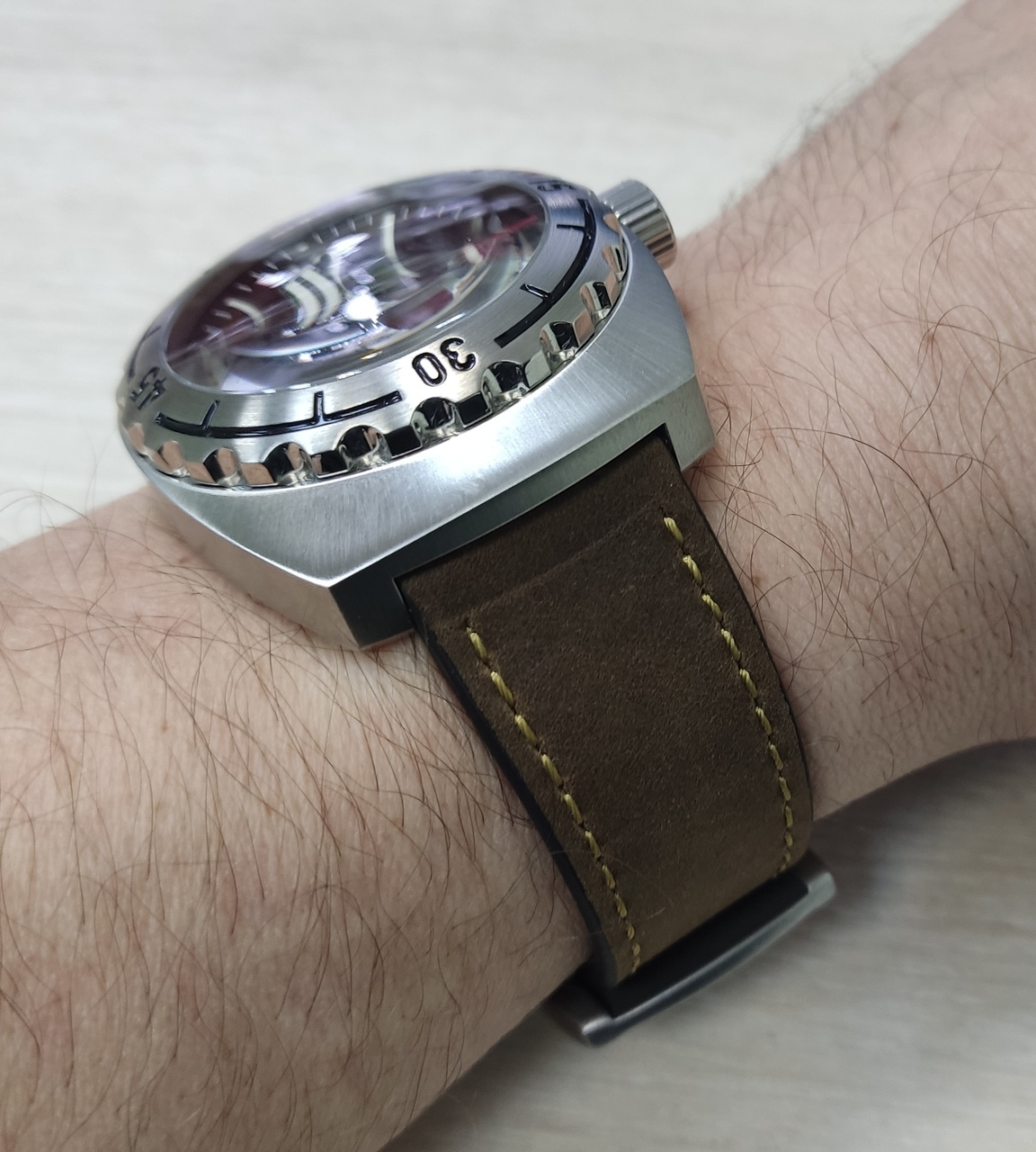 Про сапфир на классической Амфибии. В своё время на Мераноме продавался неподвижный безель с сапфировым стеклом. Т.е. родное стекло и безель снимались и заместо них приклеивался безель, куда впрессовано сапфировое стекло. Вроде как другого простого способа как вставить сапфир без серьезных конструктивных изменений в классическом корпусе еще не придумано.