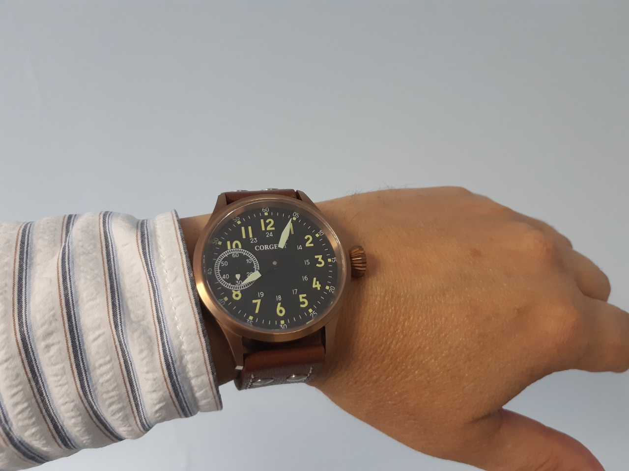 Вчера пришли очередные часы из Китая. Волею случая, это опять Corgeut. Пилоты в стальном корпусе с бронзовым покрытием (как утверждают продавцы). Давно хотел попробовать именно бронзу, хотя и наслышан о недостатках этого материала. В общем, поживем – увидим. А пока могу сказать, что еще ни разу у меня не было к часам такой «любви с первого взгляда». Видимо, не те часы покупал.