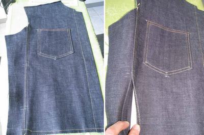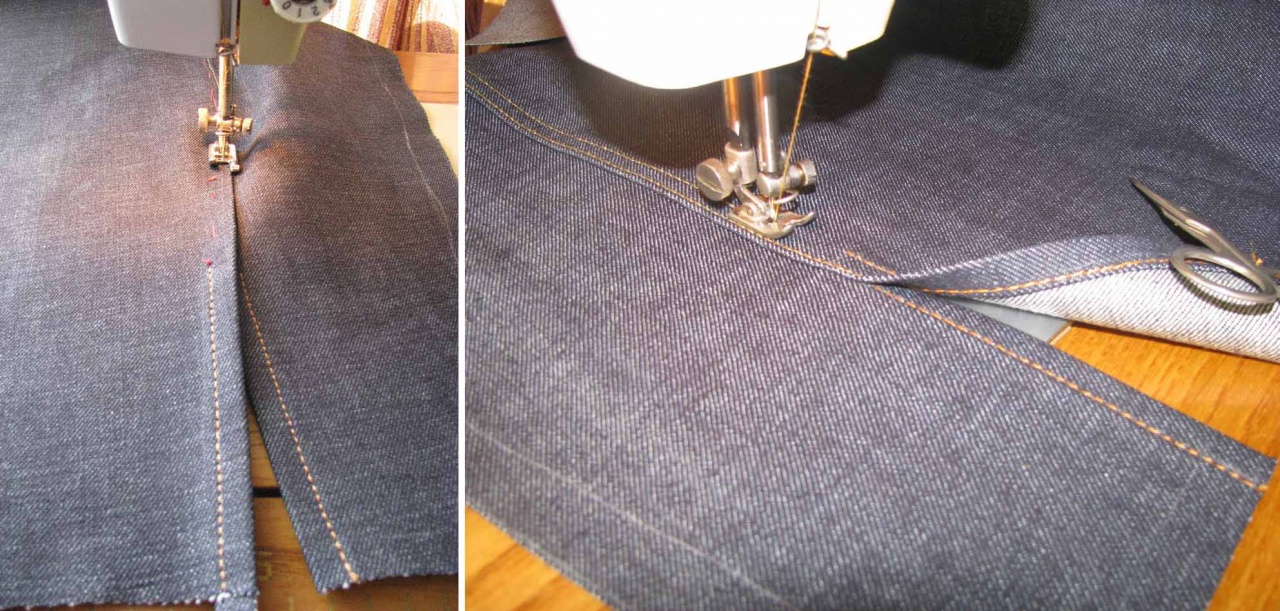 Шью на обычной бытовой машинке, но хочется, что бы всё было как на фирменном изделии. По этому, где необходим цепной стежок, сделал имитацию цепного стежка вручную. Он, конечно, никакой практичной функции не несёт, только эстетическую).