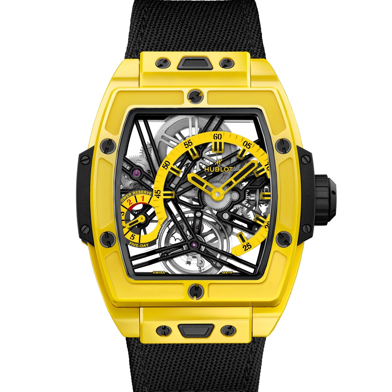 Долгожданная новость для коллекционеров Hublot. Логичный следующий шаг: применить самые современные технологии производства цветной керамики Hublot для корпуса часов Spirit of Big Bang Tourbillon 5-Day Power Reserve. Наконец, официальная информация: часы Spirit of Big Bang Tourbillon 5-Day Power Reserve доступны в красном, черном, желтом и небесно-голубом цветах. Четыре новых цвета в одной серии демонстрируют стремление Hublot поделиться своим опытом со всеми поклонниками Spirit of Big Bang. Новые версии — также уникальная мировая премьера, так как до сих пор часы Spirit of Big Bang Tourbillon 5-Day Power Reserve предлагались в корпусе из белой керамики или углеволокна.